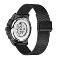 стальной миланским браслетом с IP-покрытиемIP-покрытиеМетод ионного напыления. Демонстрирует повышенную устойчивость к истиранию, окислению и химическим веществам. Под воздействием высокого давления и температуры около 1500°C молекулы металла надёжно соединяются с частицами корпуса часов. с раскладным замкомРаскладной замокДанный вариант застежки используется только на часах с металлическим браслетом. Отличительная особенность такого крепления в том, что длина браслета становится универсальной и вы можете самостоятельно отрегулировать нужный вам размер – застежка просто двигается по браслету часов.. Скелетонизированный циферблат дополнен акцентными стрелками и метками с люминесцентным покрытиемЛюминесцентное покрытиеПозволяет считывать показания времени в темноте. Производители наносят на стрелки, часовые индексы, безель или поверхность циферблата светонакопительный состав, дающий холодное свечение. для отличной читаемости в темноте, что делает модель более практичной. Стекло минеральное закалённоеМинеральное стеклоМинеральное стекло представляет собой искусственно выращенный минерал кварца. Такое стекло отличается особой устойчивостью к повреждениям и царапинам. Уступает по некоторым качествам сапфировому стеклу., устойчивое к царапинам. Водозащита до 50 метров позволит защитить корпус от случайных брызг или капель дождя. Благодаря своей универсальной эстетике эти часы уместны и в деловой среде, и в повседневном образе. Идеальный выбор для тех, кто ценит элегантный дизайн и качество.