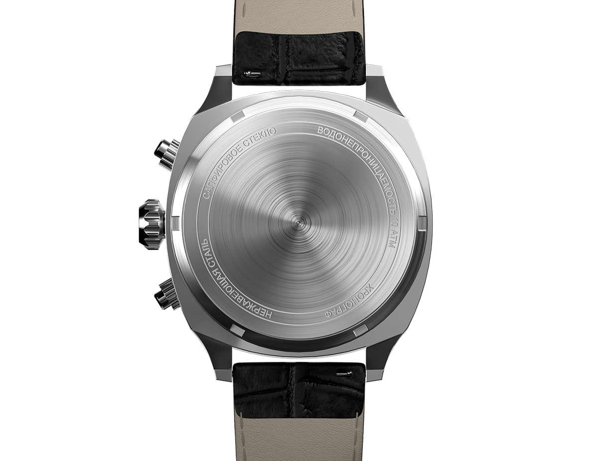 Мужские кварцевые часы — это стильный и функциональный аксессуар. Корпус диаметром 42 мм выполнен из нержавеющей стали 316L с зеркальной полировкой. Циферблат чёрного цвета оформлен индексами и стрелками с люминесцентным покрытиемЛюминесцентное покрытиеПозволяет считывать показания времени в темноте. Производители наносят на стрелки, часовые индексы, безель или поверхность циферблата светонакопительный состав, дающий холодное свечение.. Окошко даты расположено в положении 6 часов. Циферблат защищён сапфировым стекломСапфировое стеклоПрочный и надёжный материал из кристалла сапфира синтетического происхождения, характеризующийся особой твёрдостью и устойчивостью к царапинам и повреждениям.. Механизм — японский кварцевый калибр Miyota 6S21 с функцией хронографаХронографФункция позволяет измерять отрезки времени с особой точностью: часы, минуты, секунды. Верным признаком хронографа является наличие на циферблате 3 дополнительных окошек-счётчиков.. Часы оснащены кожаным ремешком чёрного цвета с текстурой под аллигатора и стандартной застёжкой. Водонепроницаемость 100 м позволяет использовать часы для плавания и повседневного ношения. Идеальный выбор для тех, кто ценит точность, качество и выразительный дизайн.