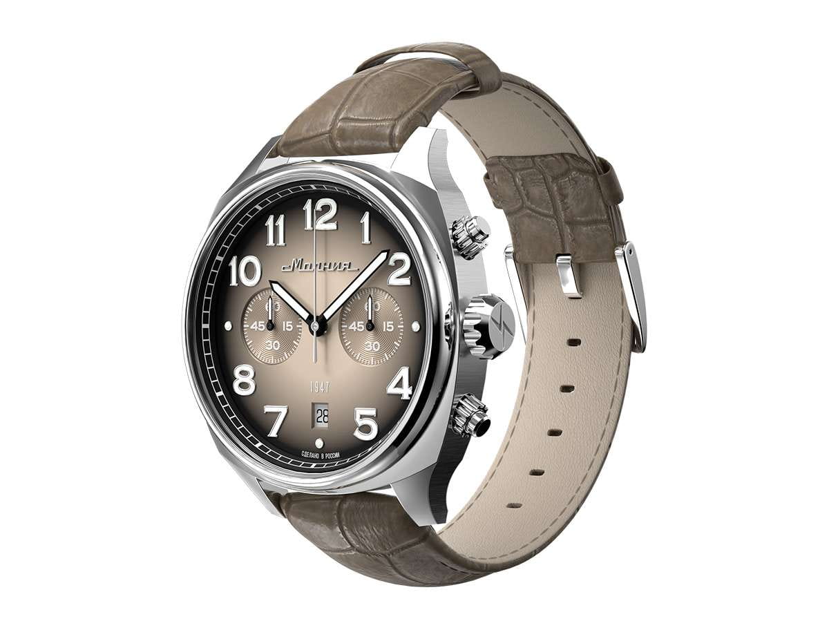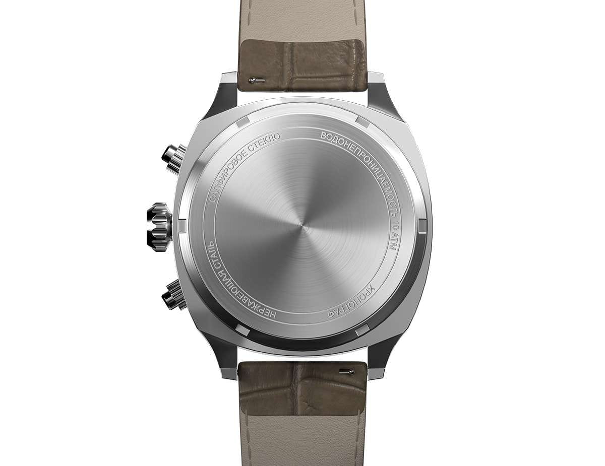 Мужские кварцевые часы — это стильный и функциональный аксессуар. Корпус диаметром 42 мм выполнен из нержавеющей стали 316L с зеркальной полировкой. Циферблат бежевого цвета оформлен индексами и стрелками с люминесцентным покрытиемЛюминесцентное покрытиеПозволяет считывать показания времени в темноте. Производители наносят на стрелки, часовые индексы, безель или поверхность циферблата светонакопительный состав, дающий холодное свечение.. Окошко даты расположено в положении 6 часов. Циферблат защищён сапфировым стекломСапфировое стеклоПрочный и надёжный материал из кристалла сапфира синтетического происхождения, характеризующийся особой твёрдостью и устойчивостью к царапинам и повреждениям.. Механизм — японский кварцевый калибр Miyota 6S21 с функцией хронографаХронографФункция позволяет измерять отрезки времени с особой точностью: часы, минуты, секунды. Верным признаком хронографа является наличие на циферблате 3 дополнительных окошек-счётчиков.. Часы оснащены кожаным ремешком коричневого цвета с текстурой под аллигатора и стандартной застёжкой. Водонепроницаемость 100 м позволяет использовать часы для плавания и повседневного ношения. Идеальный выбор для тех, кто ценит точность, качество и выразительный дизайн.