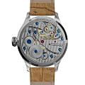 Мужские механические часы с ручным подзаводом — это аксессуар от легендарного бренда «МОЛНИЯ», созданный на Челябинском часовом заводе. Корпус диаметром 41 мм и толщиной 12 мм выполнен из нержавеющей стали 316L с зеркальной полировкой. БезельБезельВнешний ободок, закрепляющий стекло. В спортивных часах так называется поворотное кольцо с делениями на циферблате, выполняет роль таймера – замеряет отрезки времени на шкале. Неподвижный безель – элемент декора. Однонаправленно вращающийся безель на дайверских часах позволяет фиксировать моменты погружения и выныривания на поверхность. также выполнен из стали с зеркальной отделкой. Циферблат синего цвета оформлен римскими цифрами и стальными индексами. Малая секундная стрелка вынесена на позицию 9 часов. Циферблат защищён сапфировым стекломСапфировое стеклоПрочный и надёжный материал из кристалла сапфира синтетического происхождения, характеризующийся особой твёрдостью и устойчивостью к царапинам и повреждениям. толщиной 2,5 мм. Механизм — мануфактурный калибр 3603, собранный вручную, с запасом хода до 40 часов. Прозрачная задняя крышка позволяет наблюдать за работой механизма. Часы оснащены светло-коричневым кожаным ремешком шириной 20 мм с раскладной застёжкойРаскладная застёжкаТакой тип застёжки используется только на браслетах из металла. Она никогда не раскрывается полностью, происходит разделение на 2 и более частей. Раскладывающая застёжка снизит вероятность потери часов к минимуму. и системой быстрой замены. Водонепроницаемость 100 м позволяет использовать часы для плавания и повседневного ношения. Идеальный выбор для тех, кто ценит российское качество и традиции.