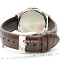 Наручные часы сдержанной расцветки идеальны для ежедневной носки, классический стиль делает их универсальной моделью. Главная особенность заключается в продолжительном сроке службы батарейки, питающей кварцевый механизм - аккумулятор рассчитан на 10 лет эксплуатации. Корпус сделан из хирургической стали 316L, материал устойчив к коррозии. Сапфировое стекло невозможно поцарапать. Люминесцентная подсветкаЛюминесцентное покрытиеПозволяет считывать показания времени в темноте. Производители наносят на стрелки, часовые индексы, безель или поверхность циферблата светонакопительный состав, дающий холодное свечение.. Водонепроницаемость 5 бар. Ремешок из натуральной кожи. Окошко текущего числа. Габариты: 47 x 41,3 x 8,8 мм.