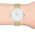 Женские наручные кварцевые часы с минеральным стекломМинеральное стеклоМинеральное стекло представляет собой искусственно выращенный минерал кварца. Такое стекло отличается особой устойчивостью к повреждениям и царапинам. Уступает по некоторым качествам сапфировому стеклу. Obaku Mesh V288LXGWHG, кварцевый механизм с высокой точностью. Класс водозащиты: 30 метров, позволит защитить корпус от случайных брызг или капель дождя. Корпус часов изготовлен из стали с IP-покрытиемIP-покрытиеМетод ионного напыления. Демонстрирует повышенную устойчивость к истиранию, окислению и химическим веществам. Под воздействием высокого давления и температуры около 1500°C молекулы металла надёжно соединяются с частицами корпуса часов.. Стальной браслет выполнен в технике миланского плетения на раскладной застёжкеРаскладная застёжкаТакой тип застёжки используется только на браслетах из металла. Она никогда не раскрывается полностью, происходит разделение на 2 и более частей. Раскладывающая застёжка снизит вероятность потери часов к минимуму. с IP-покрытиемIP-покрытиеМетод ионного напыления. Демонстрирует повышенную устойчивость к истиранию, окислению и химическим веществам. Под воздействием высокого давления и температуры около 1500°C молекулы металла надёжно соединяются с частицами корпуса часов.. Циферблат инкрустирован кристаллами.