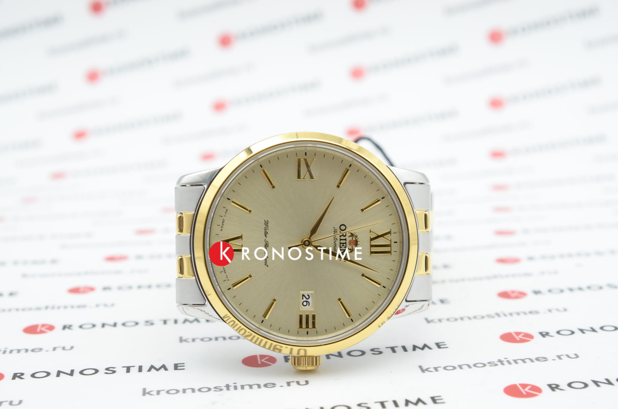 Часы Orient RA-AC0F08G — элегантная модель из коллекции Contemporary, объединяющая классический стиль и современные технологии. Корпус диаметром 41,6 мм выполнен из нержавеющей стали с золотистым фиксированным безелемБезельВнешний ободок, закрепляющий стекло. В спортивных часах так называется поворотное кольцо с делениями на циферблате, выполняет роль таймера – замеряет отрезки времени на шкале. Неподвижный безель – элемент декора. Однонаправленно вращающийся безель на дайверских часах позволяет фиксировать моменты погружения и выныривания на поверхность., подчёркивающим утончённый дизайн. Шампань-циферблат украшен золотистыми стрелками и часовыми метками, дополненными римскими цифрами на позициях 3, 6, 9 и 12 часов. Сапфировое стеклоСапфировое стеклоПрочный и надёжный материал из кристалла сапфира синтетического происхождения, характеризующийся особой твёрдостью и устойчивостью к царапинам и повреждениям. обеспечивает защиту от царапин, сохраняя идеальный внешний вид. Часы оснащены автоматическим механизмом Orient Calibre F6722 с функцией ручного завода и остановки секундной стрелки, что гарантирует точность и удобство использования. На отметке «3 часа» расположено окошко даты, добавляющее практичности. Двухцветный браслет из нержавеющей стали с раскладной застёжкойРаскладная застёжкаТакой тип застёжки используется только на браслетах из металла. Она никогда не раскрывается полностью, происходит разделение на 2 и более частей. Раскладывающая застёжка снизит вероятность потери часов к минимуму. сочетает комфорт и стиль. Водонепроницаемость до 50 метров делает часы подходящими для повседневного использования. Orient RA-AC0F08G — это утончённый аксессуар для тех, кто ценит японское качество и элегантность.
