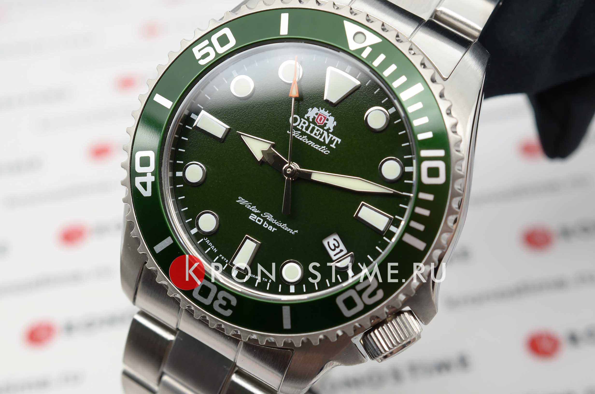Мужские механические часы с автоподзаводом Orient Automatic RA-AC0K02E. Сапфировое стеклоСапфировое стеклоПрочный и надёжный материал из кристалла сапфира синтетического происхождения, характеризующийся особой твёрдостью и устойчивостью к царапинам и повреждениям. устойчивое к появлению царапин, обладающее высокой прозрачностью. Корпус из нержавеющей стали. Вращающийся безельБезельВнешний ободок, закрепляющий стекло. В спортивных часах так называется поворотное кольцо с делениями на циферблате, выполняет роль таймера – замеряет отрезки времени на шкале. Неподвижный безель – элемент декора. Однонаправленно вращающийся безель на дайверских часах позволяет фиксировать моменты погружения и выныривания на поверхность. из нержавеющей стали с PVDPVDУльтратонкое покрытие наносится в технике вакуумного напыления, сочетает в себе нитрид титана особой прочности со слоем золота или оксида хрома. Несёт в себе декоративную или защитную функцию. покрытием. Окошко даты в положении 4 часов. Стрелки и метки с люминесцентным покрытиемЛюминесцентное покрытиеПозволяет считывать показания времени в темноте. Производители наносят на стрелки, часовые индексы, безель или поверхность циферблата светонакопительный состав, дающий холодное свечение.. Класс водозащиты: 200 метров, позволит плавать, нырять и заниматься другими водными видами спорта. Стальной браслет на раскладной застёжкеРаскладная застёжкаТакой тип застёжки используется только на браслетах из металла. Она никогда не раскрывается полностью, происходит разделение на 2 и более частей. Раскладывающая застёжка снизит вероятность потери часов к минимуму..