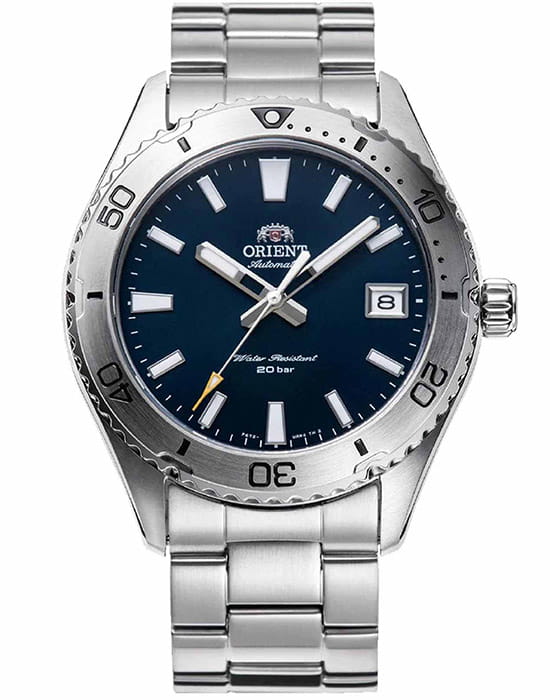 Orient RA-AC0Q02L — стильные и надёжные часы, созданные для активного образа жизни и водных приключений. Корпус диаметром 40 мм выполнен из нержавеющей стали, что обеспечивает прочность и долговечность. Однонаправленный вращающийся безельБезельВнешний ободок, закрепляющий стекло. В спортивных часах так называется поворотное кольцо с делениями на циферблате, выполняет роль таймера – замеряет отрезки времени на шкале. Неподвижный безель – элемент декора. Однонаправленно вращающийся безель на дайверских часах позволяет фиксировать моменты погружения и выныривания на поверхность. позволяет точно отслеживать время погружения. Синий циферблат украшен накладными часовыми индексами и стрелками с люминесцентным покрытиемЛюминесцентное покрытиеПозволяет считывать показания времени в темноте. Производители наносят на стрелки, часовые индексы, безель или поверхность циферблата светонакопительный состав, дающий холодное свечение., что гарантирует отличную читаемость. Окошко даты расположено на отметке «3 часа» для удобства. Защиту циферблата обеспечивает сапфировое стеклоСапфировое стеклоПрочный и надёжный материал из кристалла сапфира синтетического происхождения, характеризующийся особой твёрдостью и устойчивостью к царапинам и повреждениям., устойчивое к царапинам. Внутри установлен автоматический механизм Orient калибра F6722 с возможностью ручного завода и функцией стоп-секунды, обеспечивающий точность хода и запас энергии до 40 часов. Часы укомплектованы браслетом из нержавеющей стали, а раскладная застёжкаРаскладная застёжкаТакой тип застёжки используется только на браслетах из металла. Она никогда не раскрывается полностью, происходит разделение на 2 и более частей. Раскладывающая застёжка снизит вероятность потери часов к минимуму. гарантирует надёжную фиксацию на запястье. Водонепроницаемость 200 метров делает модель отличным выбором для дайвинга и активного отдыха.