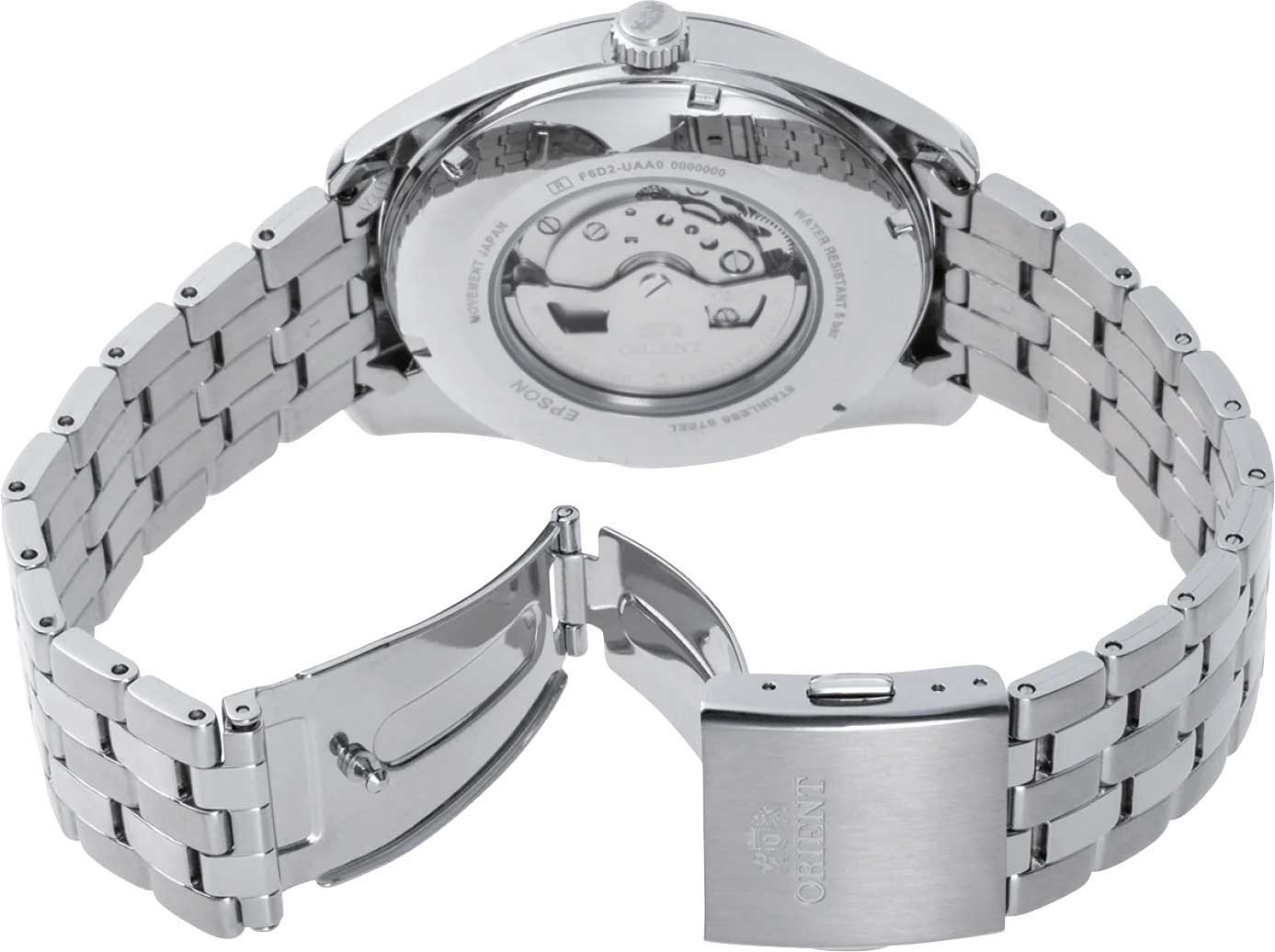 Мужские механические часы с автоподзаводом Orient Automatic RA-BA0002E. Минеральное стеклоМинеральное стеклоМинеральное стекло представляет собой искусственно выращенный минерал кварца. Такое стекло отличается особой устойчивостью к повреждениям и царапинам. Уступает по некоторым качествам сапфировому стеклу. устойчивое к появлению царапин, обладающее высокой прозрачностью. Корпус из стали. Окошко даты в положении 3 часов. Класс водозащиты: 50 метров, позволит защитить корпус от случайных брызг или капель дождя. Стальной браслет на раскладной застёжкеРаскладная застёжкаТакой тип застёжки используется только на браслетах из металла. Она никогда не раскрывается полностью, происходит разделение на 2 и более частей. Раскладывающая застёжка снизит вероятность потери часов к минимуму..