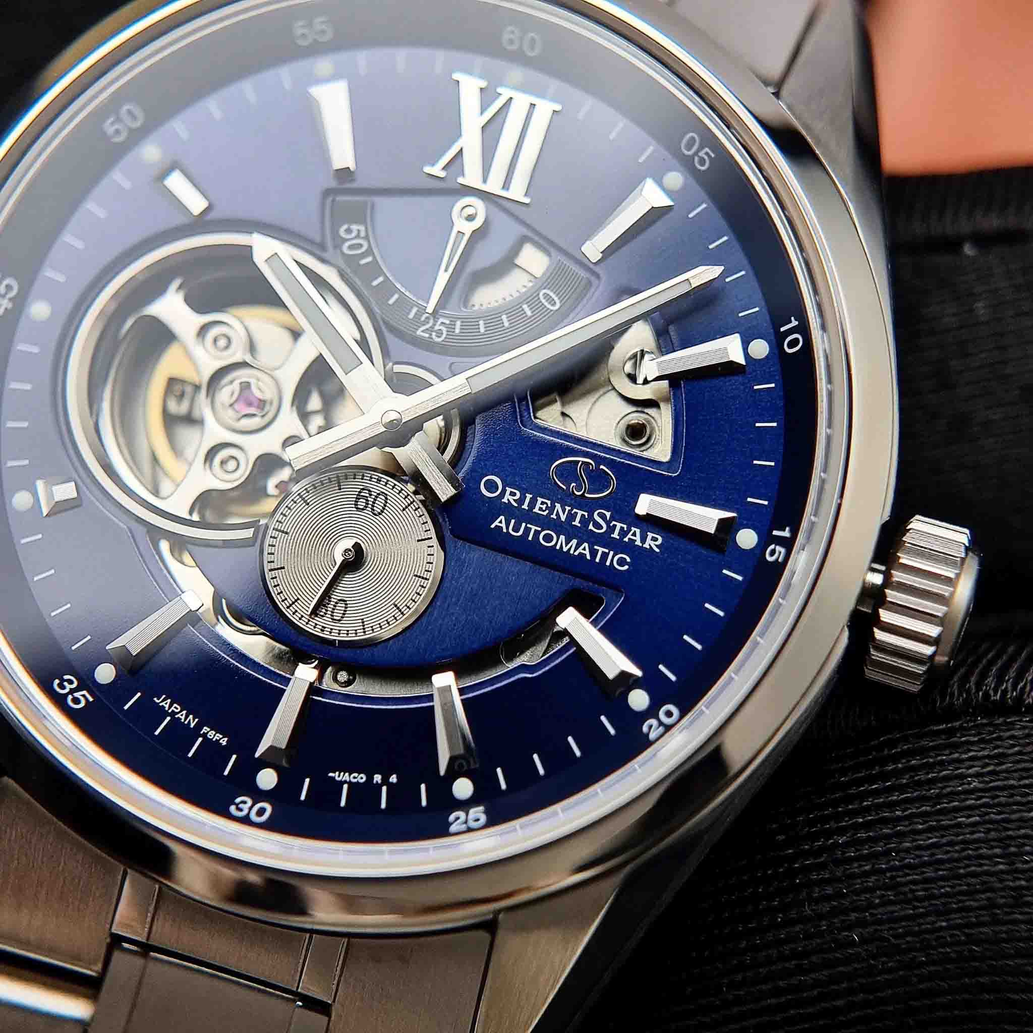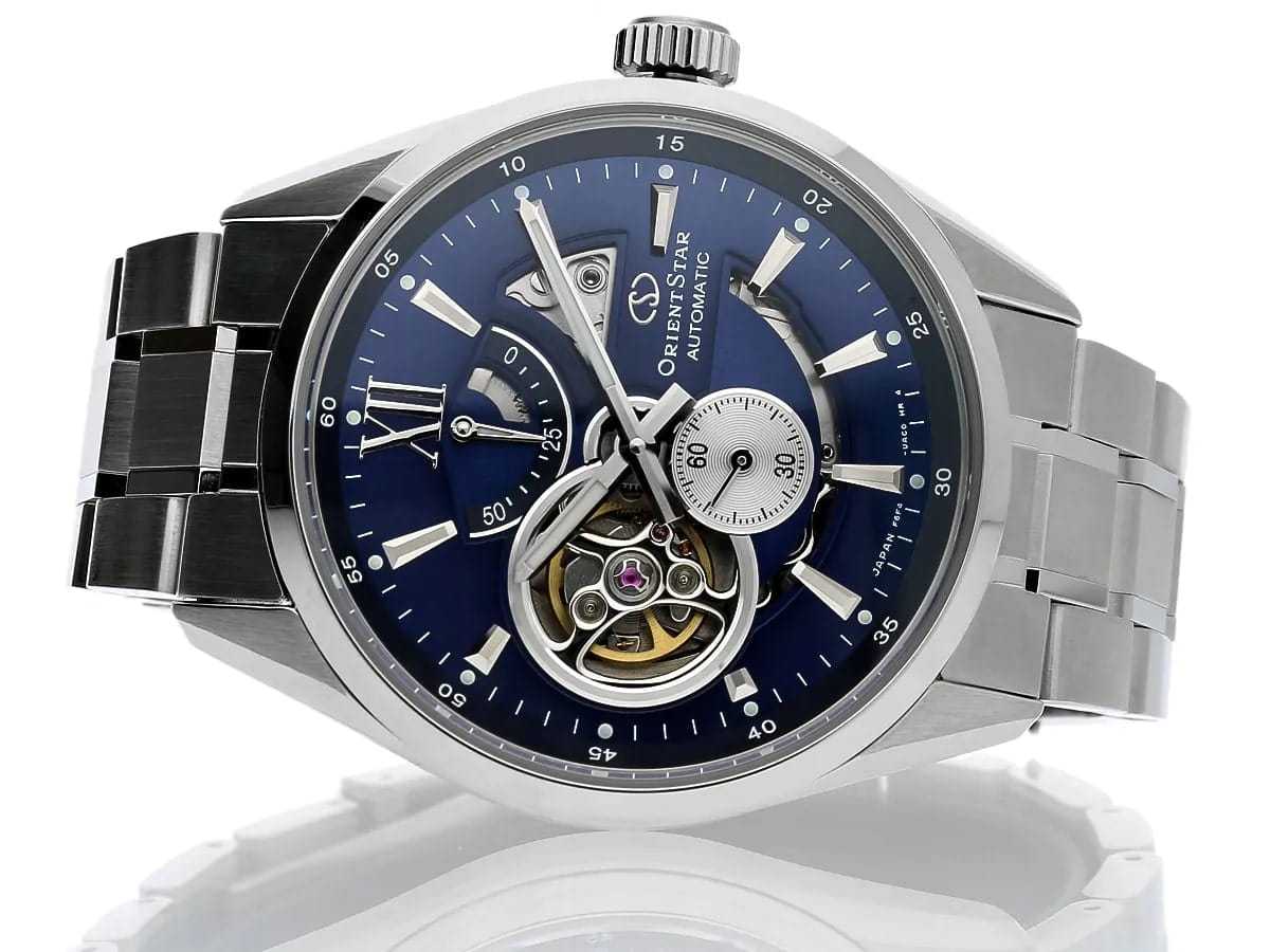 Мужские механические японские часы-скелетоны Orient Star RE-AV0003L, механический механизм (автоматический калибр) с высокой точностью. Сапфировое стеклоСапфировое стеклоПрочный и надёжный материал из кристалла сапфира синтетического происхождения, характеризующийся особой твёрдостью и устойчивостью к царапинам и повреждениям. с антибликовым покрытием устойчивое к появлению царапин, обладающее высокой прозрачностью. Класс водозащиты: 100 метров, позволит плавать, нырять и заниматься другими водными видами спорта. Корпус часов изготовлен из стали. Стальной браслет на раскладной застёжкеРаскладная застёжкаТакой тип застёжки используется только на браслетах из металла. Она никогда не раскрывается полностью, происходит разделение на 2 и более частей. Раскладывающая застёжка снизит вероятность потери часов к минимуму.. Центральные часовая и минутная стрелки с люминесцентным покрытиемЛюминесцентное покрытиеПозволяет считывать показания времени в темноте. Производители наносят на стрелки, часовые индексы, безель или поверхность циферблата светонакопительный состав, дающий холодное свечение.. Секундная стрелка вынесена на малый циферблат в позиции 6 часов. Ретроградный индикатор запаса хода в положении 12 часов. Открытый баланс хода.