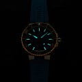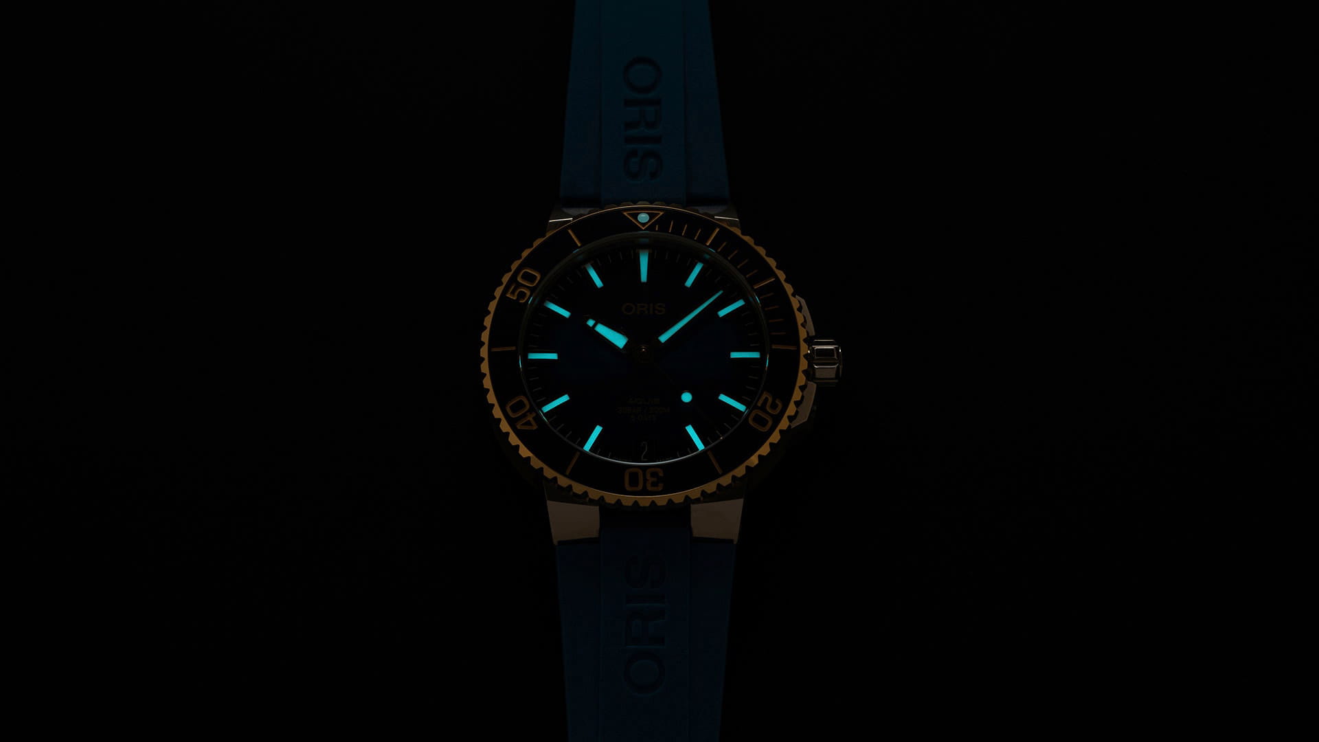 , керамический безельБезельВнешний ободок, закрепляющий стекло. В спортивных часах так называется поворотное кольцо с делениями на циферблате, выполняет роль таймера – замеряет отрезки времени на шкале. Неподвижный безель – элемент декора. Однонаправленно вращающийся безель на дайверских часах позволяет фиксировать моменты погружения и выныривания на поверхность. с минутной шкалой. Сапфировое стеклоСапфировое стеклоПрочный и надёжный материал из кристалла сапфира синтетического происхождения, характеризующийся особой твёрдостью и устойчивостью к царапинам и повреждениям., выпуклое с обеих сторон, внутреннее антибликовое покрытие. Прозрачная задняя крышка из сапфирового стеклаСапфировое стеклоПрочный и надёжный материал из кристалла сапфира синтетического происхождения, характеризующийся особой твёрдостью и устойчивостью к царапинам и повреждениям.. Стрелки и метки с люминесцентным покрытиемЛюминесцентное покрытиеПозволяет считывать показания времени в темноте. Производители наносят на стрелки, часовые индексы, безель или поверхность циферблата светонакопительный состав, дающий холодное свечение.. Завинчивающаяся заводная головка. Каучуковый ремень.