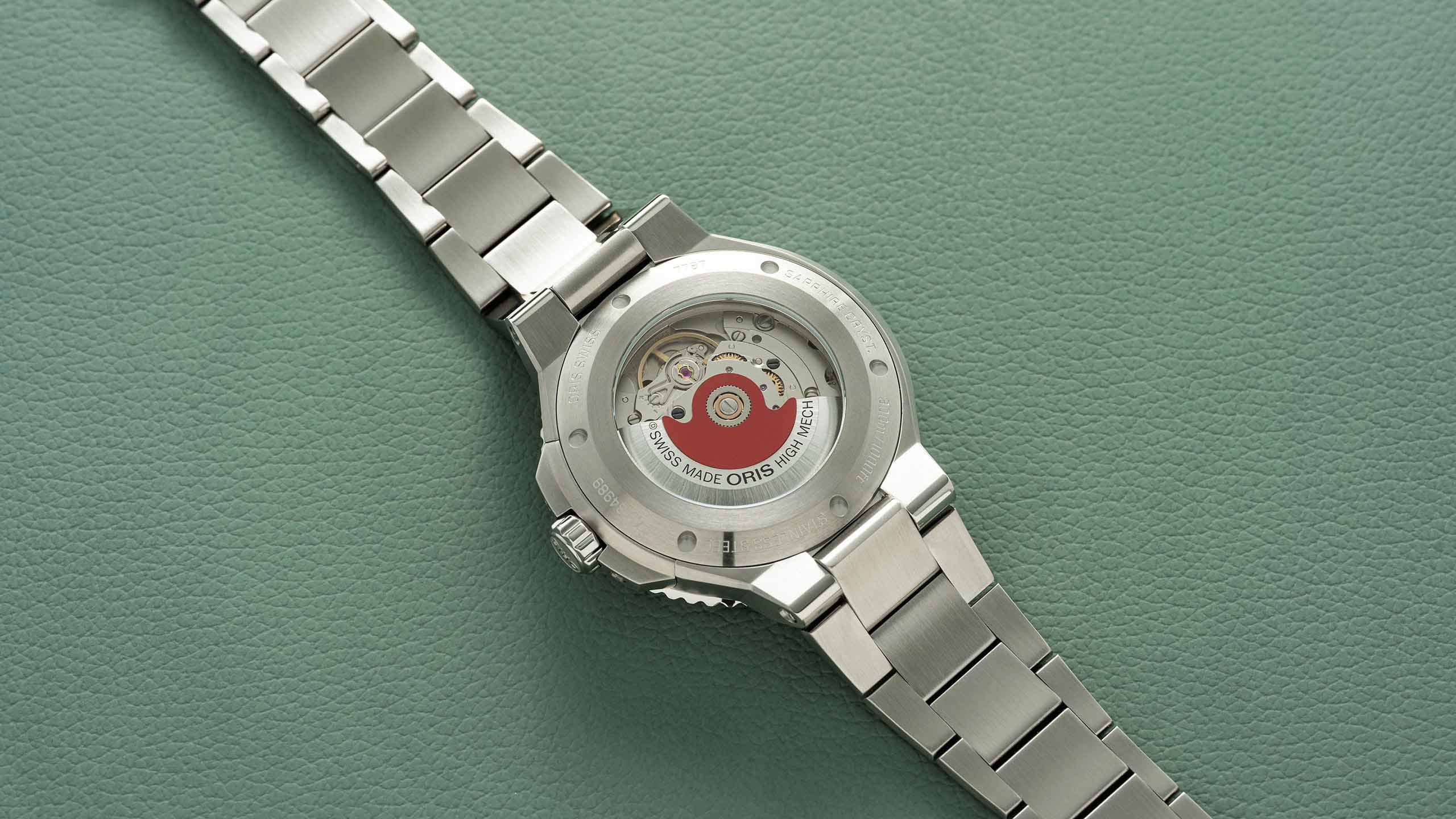 В зеленом цвете Aquis Date 41.50 превращается в природную картинку. Это повседневные люксовые часы со стандартами качества Swiss Made, надежностью автоматики и водонепроницаемостью до 30 АТМ (30 м).