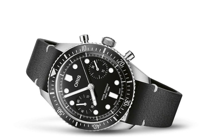 В коллекции Divers Sixty-Five появился 40-миллиметровый хронограф с однотонным циферблатом и черным ремешком из оленьей кожи Cervo Volante. Модель имеет широкие ушки, винтажные кнопки и швейцарский автоматический механизм с 48-часовым запасом хода.