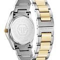 Женские кварцевые часы Philipp Plein Plein Icon Chain PW1FA0325 — это стильное сочетание элегантности и современного дизайна. Изящный корпус выполнен из нержавеющей стали, диаметром 36 мм, что придаст образу женственности и романтизма. Изысканный циферблат с метками в виде штрихов придает модели особый блеск. Циферблат защищен минеральным стекломМинеральное стеклоМинеральное стекло представляет собой искусственно выращенный минерал кварца. Такое стекло отличается особой устойчивостью к повреждениям и царапинам. Уступает по некоторым качествам сапфировому стеклу., обеспечивающий устойчивость к царапинам и украшен кристаллами. Стрелки с люминесцентным покрытиемЛюминесцентное покрытиеПозволяет считывать показания времени в темноте. Производители наносят на стрелки, часовые индексы, безель или поверхность циферблата светонакопительный состав, дающий холодное свечение.. БезельБезельВнешний ободок, закрепляющий стекло. В спортивных часах так называется поворотное кольцо с делениями на циферблате, выполняет роль таймера – замеряет отрезки времени на шкале. Неподвижный безель – элемент декора. Однонаправленно вращающийся безель на дайверских часах позволяет фиксировать моменты погружения и выныривания на поверхность. с PVD-покрытиемPVDУльтратонкое покрытие наносится в технике вакуумного напыления, сочетает в себе нитрид титана особой прочности со слоем золота или оксида хрома. Несёт в себе декоративную или защитную функцию. золотистого цвета. Часы оснащены надежным кварцевым механизмом. Стальной браслет с частичным PVD-покрытиемPVDУльтратонкое покрытие наносится в технике вакуумного напыления, сочетает в себе нитрид титана особой прочности со слоем золота или оксида хрома. Несёт в себе декоративную или защитную функцию. на застёжке-бабочкеЗастёжка "бабочка"Такой вид застёжки дополняется предохранителями, помогающими избежать случайного раскрытия браслета. Обладают изящным исполнением. , гарантирует комфортное и безопасное ношение. Класс водозащиты: 50 метров позволит защитить корпус от случайных брызг или капель дождя. Phlipp Plein — отличный выбор для тех, кто ценит яркость и качество.
