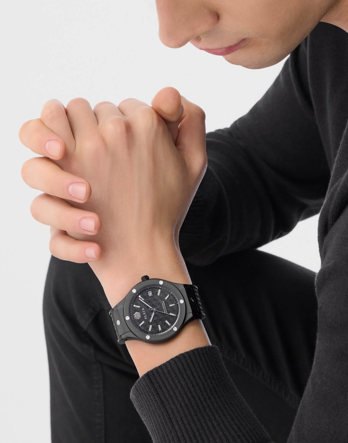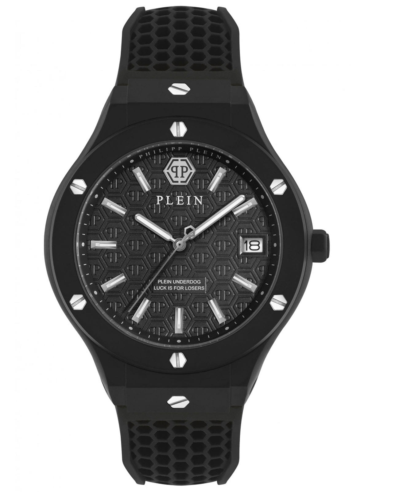 Philipp Plein Plein Underdog PWUFA0325 - это дерзкие и бескомпромиссные часы, воплощающие бунтарский дух бренда. Диаметр корпуса из прочной нержавеющей стали с PVD-покрытиемPVDУльтратонкое покрытие наносится в технике вакуумного напыления, сочетает в себе нитрид титана особой прочности со слоем золота или оксида хрома. Несёт в себе декоративную или защитную функцию. равен 44 мм. Силиконовый ремешок на стандартной застёжке обеспечивает надёжную фиксацию и комфортное ношение. Метки в виде штрихов. Минеральное стеклоМинеральное стеклоМинеральное стекло представляет собой искусственно выращенный минерал кварца. Такое стекло отличается особой устойчивостью к повреждениям и царапинам. Уступает по некоторым качествам сапфировому стеклу. защищает циферблат от царапин. Люминесцентное покрытиеЛюминесцентное покрытиеПозволяет считывать показания времени в темноте. Производители наносят на стрелки, часовые индексы, безель или поверхность циферблата светонакопительный состав, дающий холодное свечение. стрелок и меток позволит следить за временем даже в полной темноте. Граненая заводная головка. Влагозащита: 50 метров, позволит защитить корпус от случайных брызг или капель дождя. Идеальный аксессуар для тех, кто ценит индивидуальность и не боится выделяться из толпы.