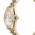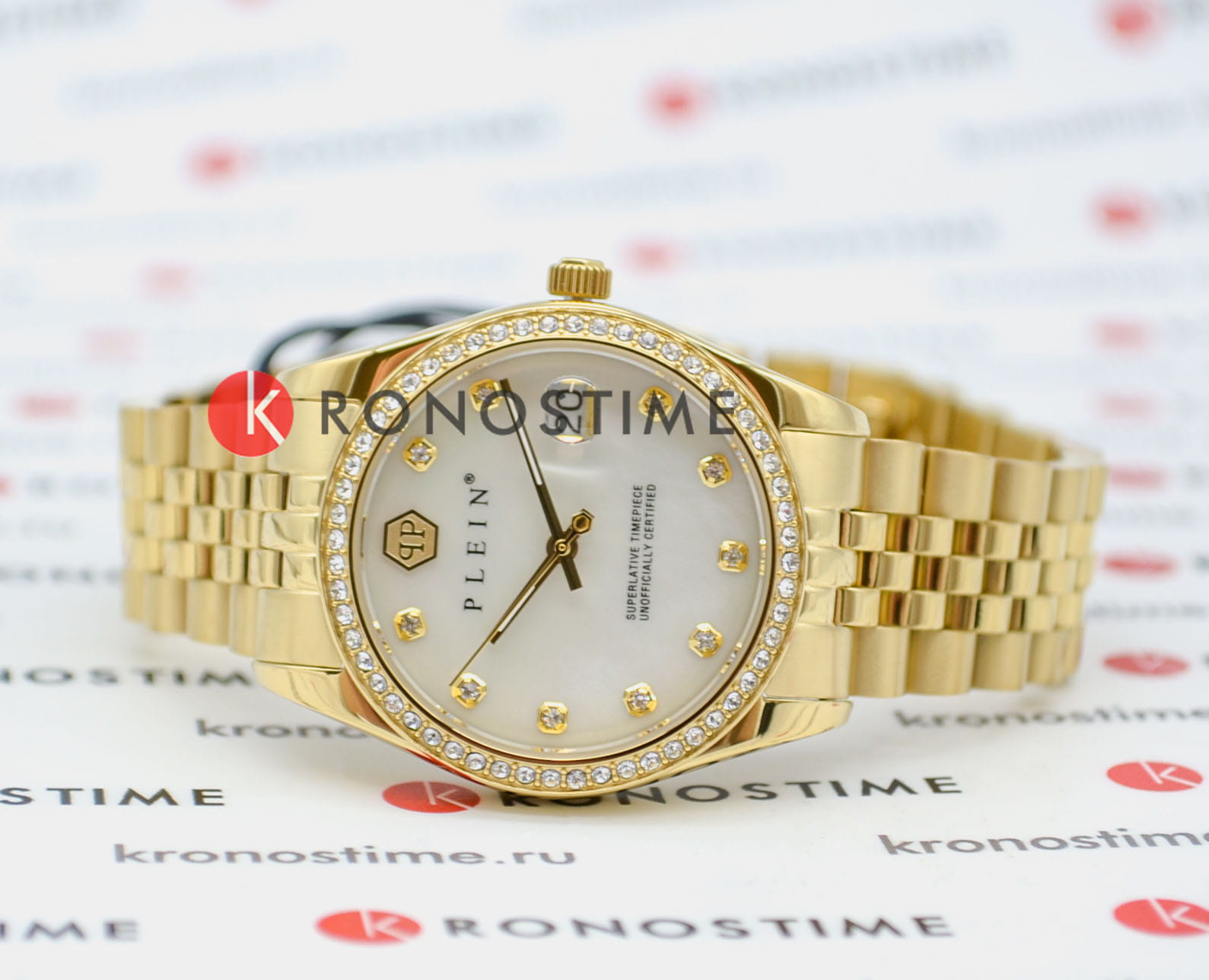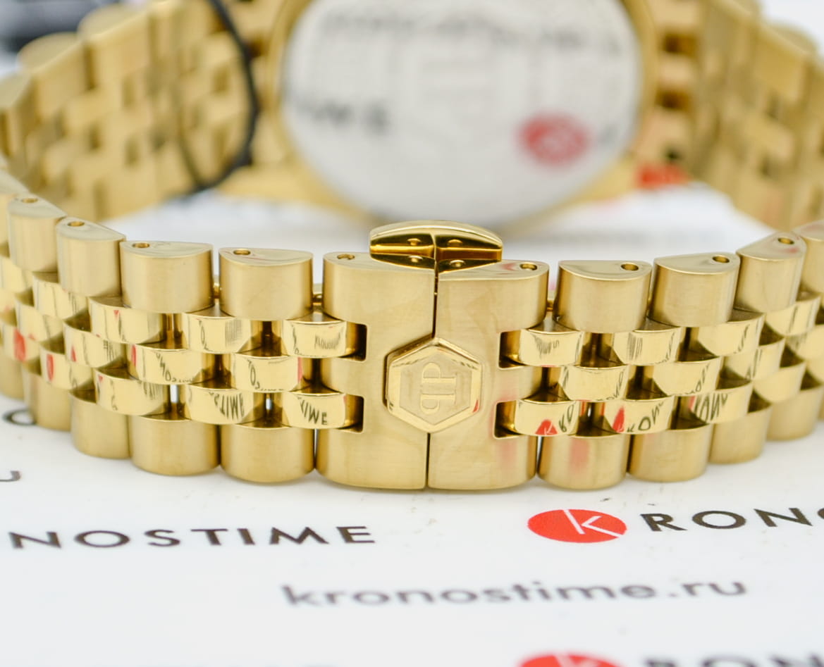 Яркие женские часы  Philipp Plein Date Superlative PWYAA0323 с минеральным стекломМинеральное стеклоМинеральное стекло представляет собой искусственно выращенный минерал кварца. Такое стекло отличается особой устойчивостью к повреждениям и царапинам. Уступает по некоторым качествам сапфировому стеклу.. Особенные часы для особенных женщин! Ослепительный аксессуар, демонстрирующий роскошь и изысканность.Часы с круглым стальным корпусом с IP-покрытиемIP-покрытиеМетод ионного напыления. Демонстрирует повышенную устойчивость к истиранию, окислению и химическим веществам. Под воздействием высокого давления и температуры около 1500°C молекулы металла надёжно соединяются с частицами корпуса часов.. Перламутровый циферблат с метками в виде точек, украшенных кристаллами. Люминесцентное покрытиеЛюминесцентное покрытиеПозволяет считывать показания времени в темноте. Производители наносят на стрелки, часовые индексы, безель или поверхность циферблата светонакопительный состав, дающий холодное свечение. стрелок. Окошко даты с увеличительным стеклом находится в положении 3 часа. Рифленая заводная головка. Стальной браслет на застёжке бабочка с кнопкамиЗастёжка "бабочка"Такой вид застёжки дополняется предохранителями, помогающими избежать случайного раскрытия браслета. Обладают изящным исполнением.