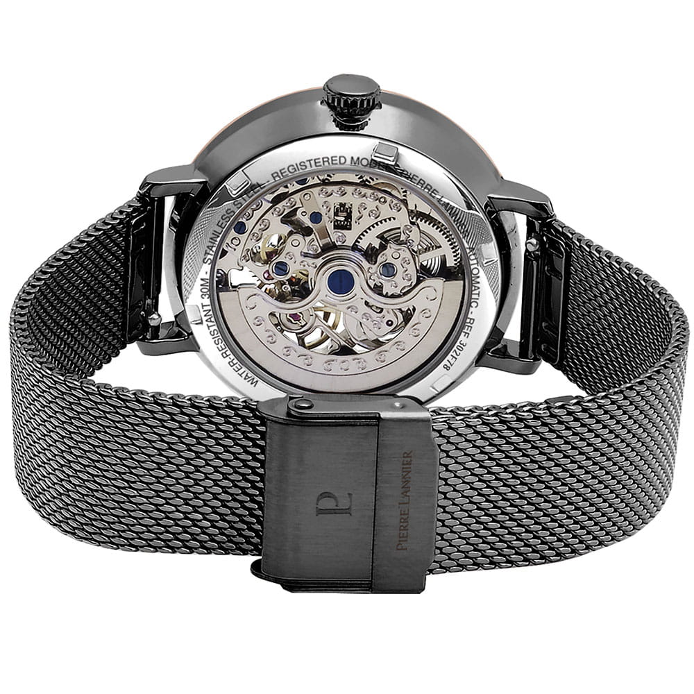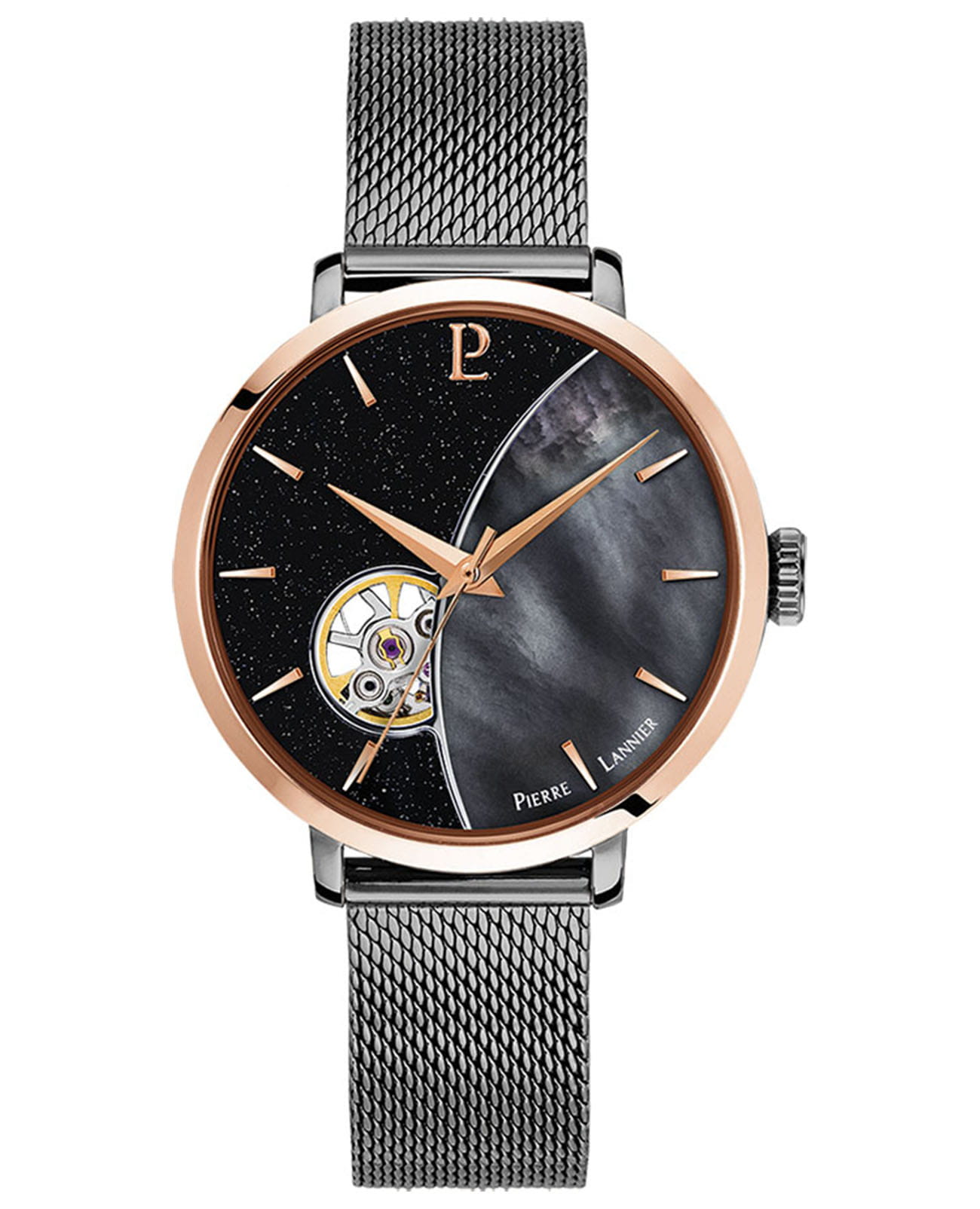 Женские механические часы с автоподзаводом Pierre Lannier Celeste 302F789. Минеральное стеклоМинеральное стеклоМинеральное стекло представляет собой искусственно выращенный минерал кварца. Такое стекло отличается особой устойчивостью к повреждениям и царапинам. Уступает по некоторым качествам сапфировому стеклу. устойчивое к мелким механическим повреждениям. Центральные часовая, минутная и секундная стрелки. Корпус и браслет выполнен из нержавеющей стали с IP-покрытиемIP-покрытиеМетод ионного напыления. Демонстрирует повышенную устойчивость к истиранию, окислению и химическим веществам. Под воздействием высокого давления и температуры около 1500°C молекулы металла надёжно соединяются с частицами корпуса часов.. Водостойкость: 30 метров, позволит защитить корпус от случайных брызг или капель дождя. Прозрачная задняя крышка. Браслет миланского плетения с раскладной застёжкойРаскладная застёжкаТакой тип застёжки используется только на браслетах из металла. Она никогда не раскрывается полностью, происходит разделение на 2 и более частей. Раскладывающая застёжка снизит вероятность потери часов к минимуму..