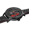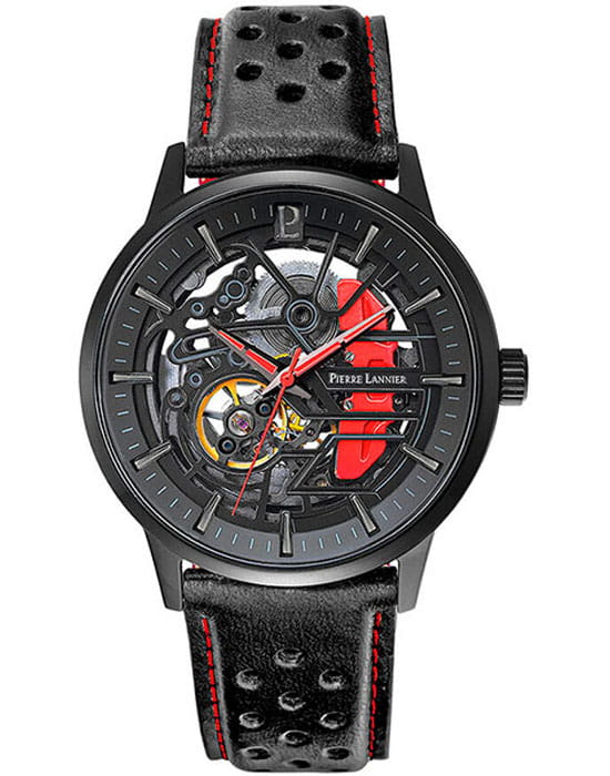 Pierre Lannier Paddock 338A433 — стильный и динамичный автоматический хронограф, словно вдохновлённый гоночными трассами. Корпус диаметром 43 мм изготовлен из нержавеющей стали с матовым чёрным PVD-покрытиемPVDУльтратонкое покрытие наносится в технике вакуумного напыления, сочетает в себе нитрид титана особой прочности со слоем золота или оксида хрома. Несёт в себе декоративную или защитную функцию., придающим часам современный спортивный вид . Циферблат частично скелетонизирован, открывая механизм, где баланс и шестерёнки становятся визуальным центром. Контрастные красные акценты на стрелках и декоративном элементе напоминают гоночный суппорт, подчёркивая драйвовую эстетику . Стрелки и часовые метки покрыты люминесцентным покрытиемЛюминесцентное покрытиеПозволяет считывать показания времени в темноте. Производители наносят на стрелки, часовые индексы, безель или поверхность циферблата светонакопительный состав, дающий холодное свечение. для удобства чтения в темноте. Циферблат защищён прочным минеральным стекломМинеральное стеклоМинеральное стекло представляет собой искусственно выращенный минерал кварца. Такое стекло отличается особой устойчивостью к повреждениям и царапинам. Уступает по некоторым качествам сапфировому стеклу., устойчивым к повседневным воздействиям . В основе механизма — автомат с автоподзаводом, обеспечивающий запас хода около 40–42 часов для уверенной работы вне подзарядки . Кожаный ремешок с перфорацией и красной прострочкой, шириной 22 мм, лёгок, удобен и подчёркивает спортивный характер модели. Он оснащён надёжной стандартной застежкой для простоты смены и ношения . Водозащита до 50 м (5 ATM) обеспечивает защиту от случайных брызг и дождя, делая модель практичной для повседневной жизни . Paddock — это смелое сочетание механической субстанции, красочной динамики и французской утончённости. Часы для тех, кто ценит техническое очарование и спортивный характер в одном корпусе.