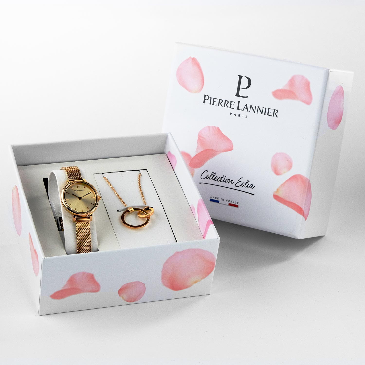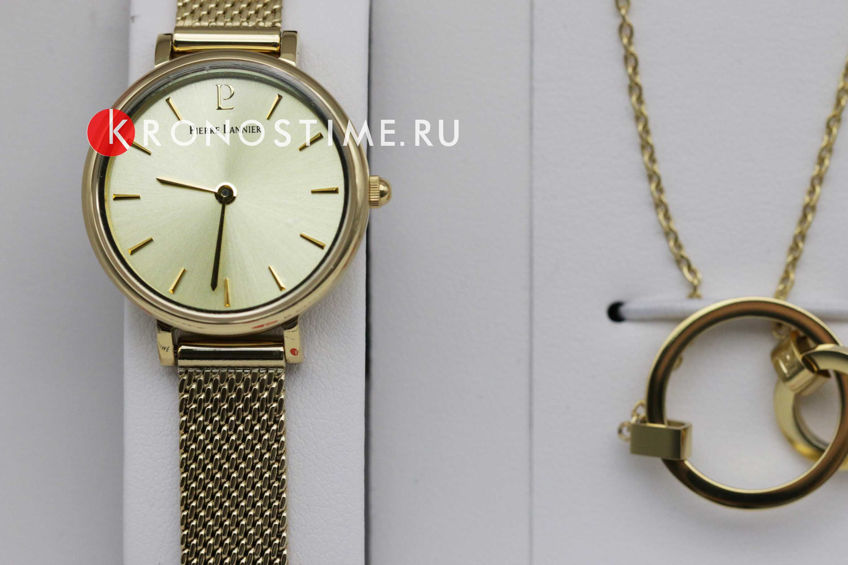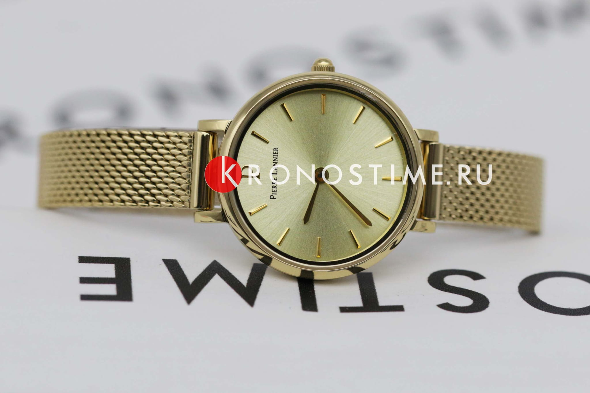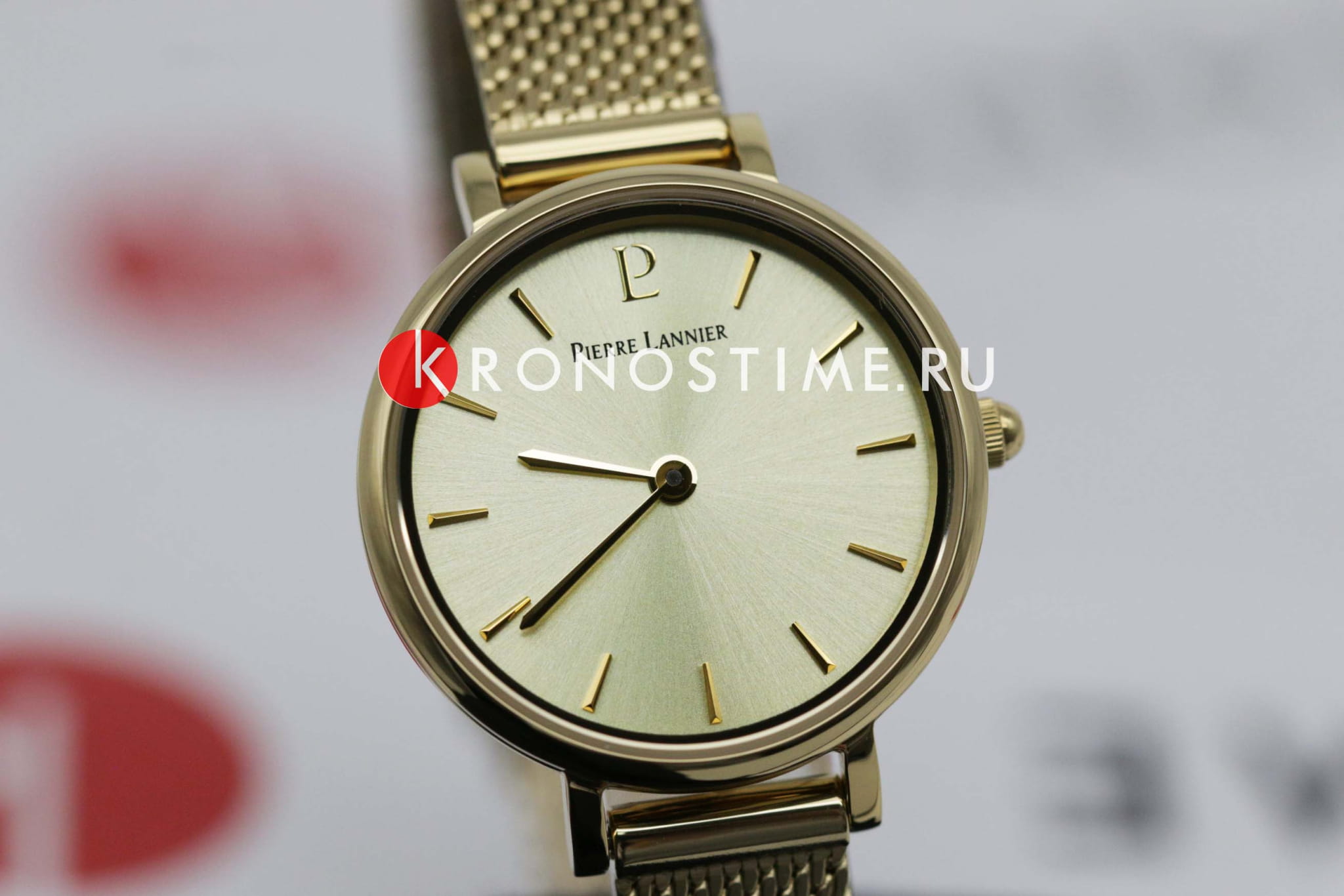 Женские кварцевые часы Pierre Lannier Nova 355D548. Центральные часовая и минутная стрелки. Золотистый циферблат. Круглый корпус выполнен из полированной нержавеющей стали с IP-покрытиемIP-покрытиеМетод ионного напыления. Демонстрирует повышенную устойчивость к истиранию, окислению и химическим веществам. Под воздействием высокого давления и температуры около 1500°C молекулы металла надёжно соединяются с частицами корпуса часов.. Стальной браслет выполнен в технике миланского плетения, раскладная застёжкаРаскладная застёжкаТакой тип застёжки используется только на браслетах из металла. Она никогда не раскрывается полностью, происходит разделение на 2 и более частей. Раскладывающая застёжка снизит вероятность потери часов к минимуму.. Прочное минеральное стеклоМинеральное стеклоМинеральное стекло представляет собой искусственно выращенный минерал кварца. Такое стекло отличается особой устойчивостью к повреждениям и царапинам. Уступает по некоторым качествам сапфировому стеклу., устойчивое к мелким механическим повреждениям. Водостойкость: 30 метров, позволит защитить корпус от случайных брызг или капель дождя.