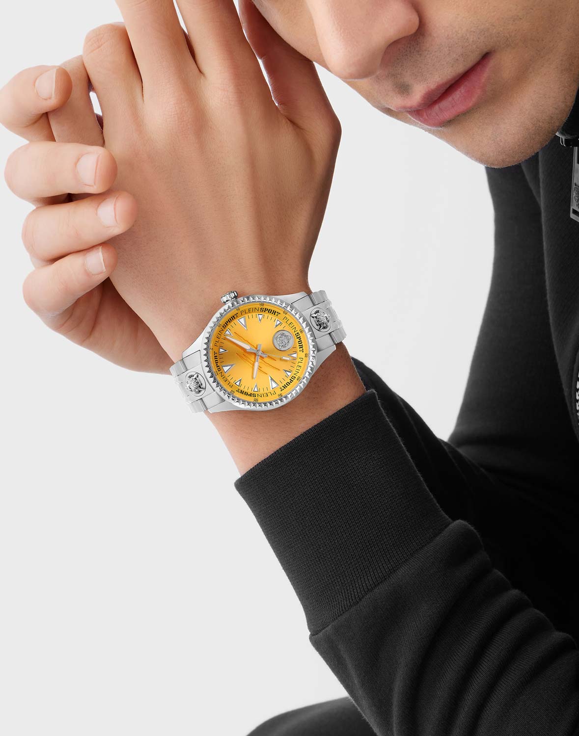 Дерзкий аксессуар со смелым, бунтарским дизайном будет с вами в любом приключении. Мужские кварцевые Plein Sport PS5BA0824 часы. Корпус часов изготовлен из стали. Циферблат дополнен паттерном ''след когтей''. Метки в виде штрихов, фирменное лого в виде тигра в положении 6 часов. Рифленая заводная головка с защитой. Класс водозащиты: 50 метров, позволит защитить корпус от случайных брызг или капель дождя. Стальной браслет на раскладной застёжкеРаскладная застёжкаТакой тип застёжки используется только на браслетах из металла. Она никогда не раскрывается полностью, происходит разделение на 2 и более частей. Раскладывающая застёжка снизит вероятность потери часов к минимуму..
