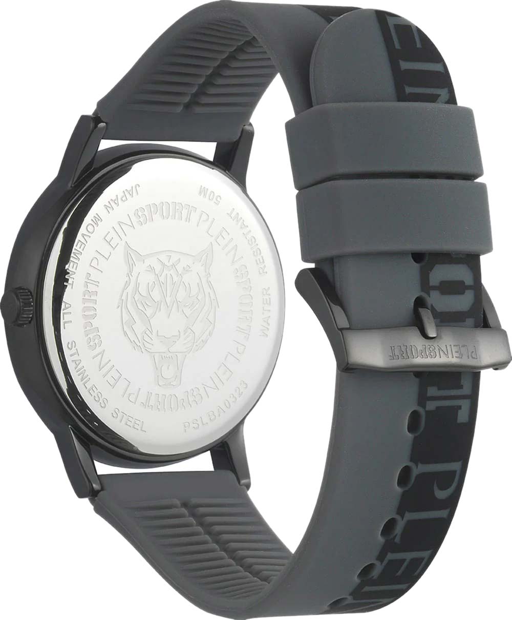 Немецкие мужские кварцевые часы Plein Sport Legend PSLBA0323 с минеральным стекломМинеральное стеклоМинеральное стекло представляет собой искусственно выращенный минерал кварца. Такое стекло отличается особой устойчивостью к повреждениям и царапинам. Уступает по некоторым качествам сапфировому стеклу., кварцевый механизм с высокой точностью. Класс водозащиты: 50 метров, позволит защитить корпус от случайных брызг или капель дождя. Корпус часов изготовлен из стали с IP-покрытиемIP-покрытиеМетод ионного напыления. Демонстрирует повышенную устойчивость к истиранию, окислению и химическим веществам. Под воздействием высокого давления и температуры около 1500°C молекулы металла надёжно соединяются с частицами корпуса часов.. Стрелки и метки с люминесцентным покрытиемЛюминесцентное покрытиеПозволяет считывать показания времени в темноте. Производители наносят на стрелки, часовые индексы, безель или поверхность циферблата светонакопительный состав, дающий холодное свечение.. Силиконовый ремешок на стандартной застёжке.