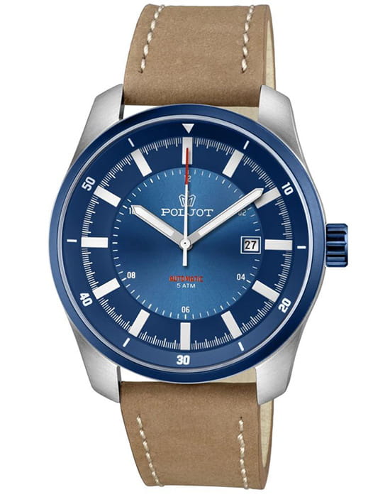 Poljot 8215.291231 — современные механические часы с автоподзаводом, воплощающие дух надёжности и динамичного стиля. Корпус из нержавеющей стали гармонично сочетается с насыщенным циферблатом, украшенным радиальным узором, а контрастные акценты придают модели выразительность и спортивный характер. БезельБезельВнешний ободок, закрепляющий стекло. В спортивных часах так называется поворотное кольцо с делениями на циферблате, выполняет роль таймера – замеряет отрезки времени на шкале. Неподвижный безель – элемент декора. Однонаправленно вращающийся безель на дайверских часах позволяет фиксировать моменты погружения и выныривания на поверхность. с PVD-покрытиемPVDУльтратонкое покрытие наносится в технике вакуумного напыления, сочетает в себе нитрид титана особой прочности со слоем золота или оксида хрома. Несёт в себе декоративную или защитную функцию.. В основе конструкции — проверенный японский калибр Miyota 8215, обеспечивающий точный ход и плавное движение стрелок. Метки и стрелки с люминесцентным покрытиемЛюминесцентное покрытиеПозволяет считывать показания времени в темноте. Производители наносят на стрелки, часовые индексы, безель или поверхность циферблата светонакопительный состав, дающий холодное свечение. обеспечивают отличную читаемость даже в условиях слабого освещения. Окно даты, подчеркивая симметрию дизайна. Прочное минеральное стеклоМинеральное стеклоМинеральное стекло представляет собой искусственно выращенный минерал кварца. Такое стекло отличается особой устойчивостью к повреждениям и царапинам. Уступает по некоторым качествам сапфировому стеклу. надёжно защищает циферблат, а ремешок из натуральной кожи с контрастной строчкой придаёт модели уют и стиль. Poljot — универсальные часы для мужчины, ценящего механическую точность и уверенный, сдержанный стиль в каждой детали.