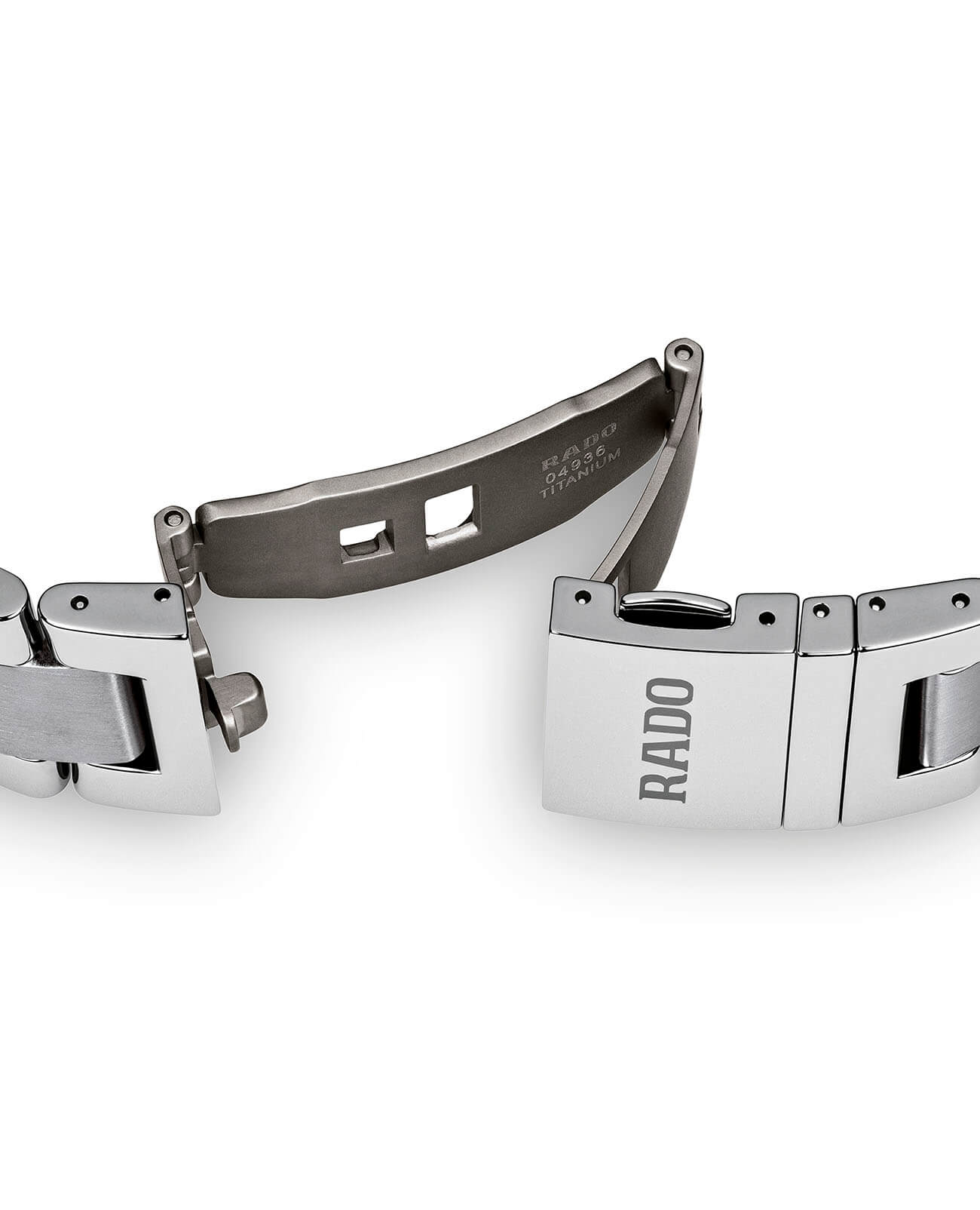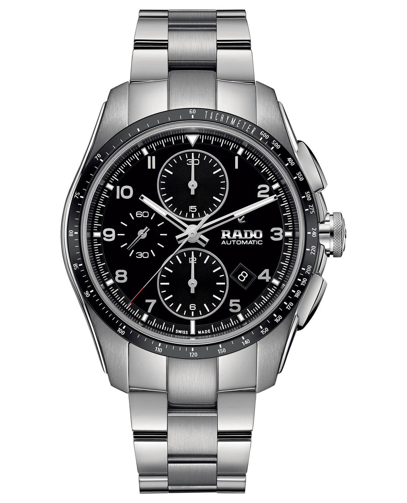 Классический хронографХронографФункция позволяет измерять отрезки времени с особой точностью: часы, минуты, секунды. Верным признаком хронографа является наличие на циферблате 3 дополнительных окошек-счётчиков. с элементами спортивного дизайна идеально подойдёт к образу солидного и делового мужчины. Серебристо-чёрная расцветка позволяет носить часы при любых обстоятельствах. Модель оснащена швейцарским автоматическим механизмом ETA A05.H21, запас хода которого увеличен до 54 часов. Прозрачная задняя крышка корпуса. Стекло из сапфира с антибликовым покрытием. Корпус и браслет из стали 316L с антикоррозионными свойствами. Чёрный безельБезельВнешний ободок, закрепляющий стекло. В спортивных часах так называется поворотное кольцо с делениями на циферблате, выполняет роль таймера – замеряет отрезки времени на шкале. Неподвижный безель – элемент декора. Однонаправленно вращающийся безель на дайверских часах позволяет фиксировать моменты погружения и выныривания на поверхность. из высокотехнологичной керамикиВысокотехнологичная керамикаИнновационный запатентованный Rado материал с гладкой или матовой поверхностью. Керамика за счёт кристаллической структуры обладает повышенной устойчивостью от возникновения царапин. Материал способен принимать температуру тела человека, обеспечивая невероятный комфорт при ношении.. Люминесцентная подсветкаЛюминесцентное покрытиеПозволяет считывать показания времени в темноте. Производители наносят на стрелки, часовые индексы, безель или поверхность циферблата светонакопительный состав, дающий холодное свечение. стрелок. Водонепроницаемость 100 метров. Секундомер, отображение даты, шкала тахиметраТахиметрРазмеченная шкала, располагается на ободке или безеле часов. Тахиметр позволяет рассчитать скорость на определённом участке пути, расстояние измеряется в километрах или милях.. . Диаметр корпуса: 44 мм.