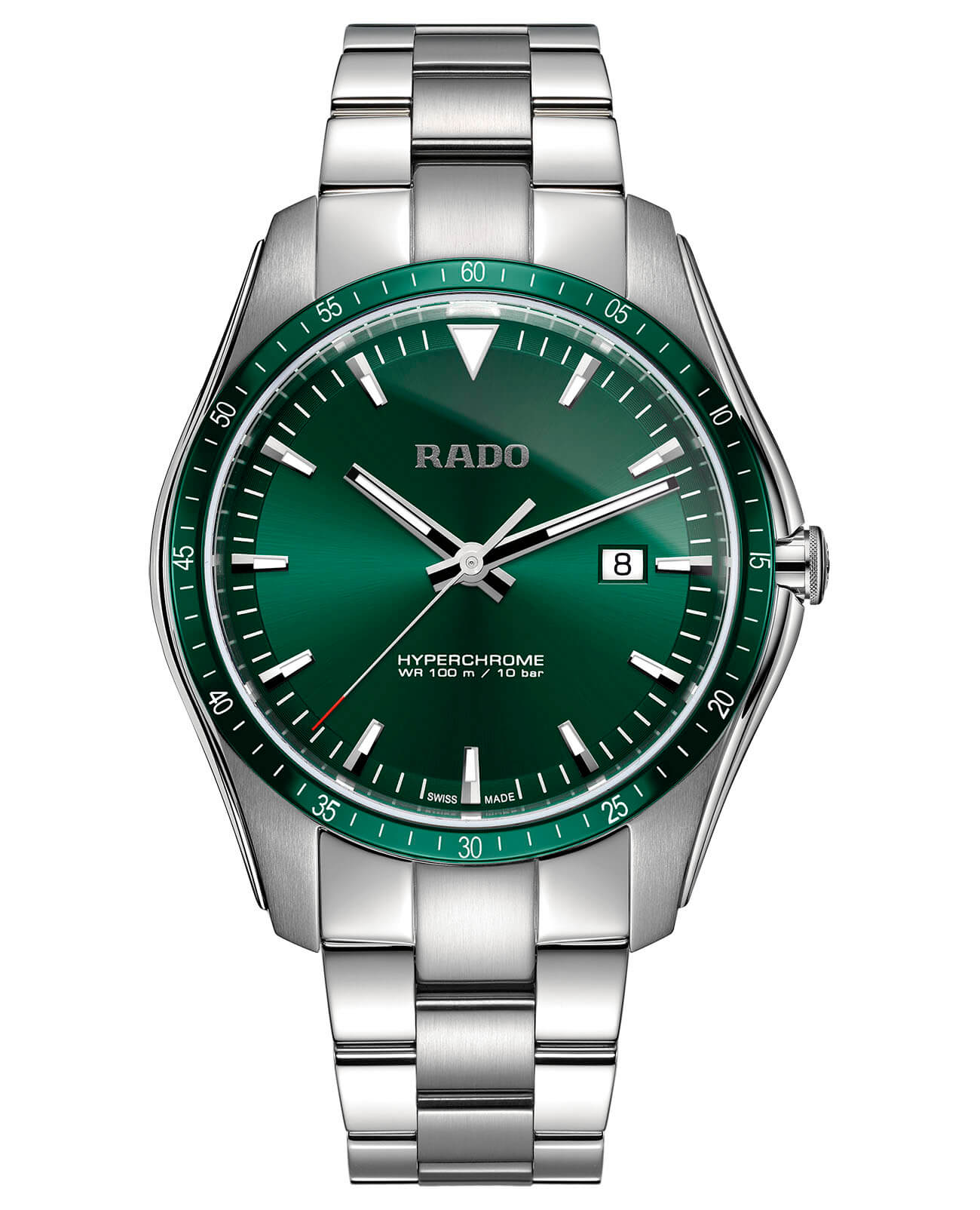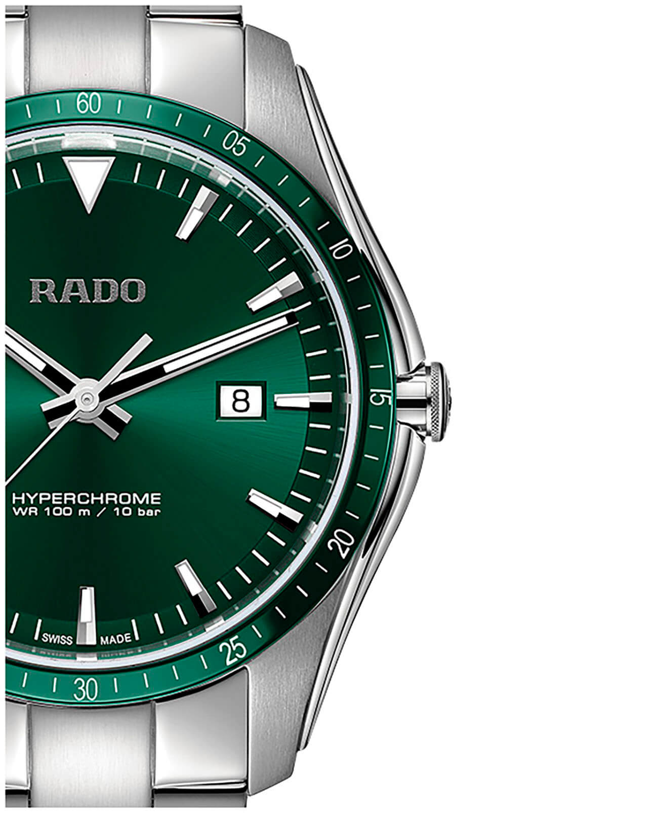 Швейцарские кварцевые часы Rado Hyperchrome R32502313. Сапфировое стеклоСапфировое стеклоПрочный и надёжный материал из кристалла сапфира синтетического происхождения, характеризующийся особой твёрдостью и устойчивостью к царапинам и повреждениям. устойчивое к мелким механическим повреждениям. Корпус изготовлен из нержавеющей стали. БезельБезельВнешний ободок, закрепляющий стекло. В спортивных часах так называется поворотное кольцо с делениями на циферблате, выполняет роль таймера – замеряет отрезки времени на шкале. Неподвижный безель – элемент декора. Однонаправленно вращающийся безель на дайверских часах позволяет фиксировать моменты погружения и выныривания на поверхность. из высокотехнологичной керамикиВысокотехнологичная керамикаИнновационный запатентованный Rado материал с гладкой или матовой поверхностью. Керамика за счёт кристаллической структуры обладает повышенной устойчивостью от возникновения царапин. Материал способен принимать температуру тела человека, обеспечивая невероятный комфорт при ношении.. Стрелки с люминесцентным покрытиемЛюминесцентное покрытиеПозволяет считывать показания времени в темноте. Производители наносят на стрелки, часовые индексы, безель или поверхность циферблата светонакопительный состав, дающий холодное свечение.. Класс водозащиты: 100 метров, позволит плавать, нырять и заниматься другими водными видами спорта. Браслет из стали на раскладной застёжкеРаскладная застёжкаТакой тип застёжки используется только на браслетах из металла. Она никогда не раскрывается полностью, происходит разделение на 2 и более частей. Раскладывающая застёжка снизит вероятность потери часов к минимуму..
