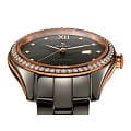 Аксессуар премиальной категории приковывает взгляды, оригинальный внешний вид очаровывает, хочется поближе рассмотреть каждую деталь. Тёмный циферблат «солнечные лучи» инкрустирован 10-ю бриллиантами в 0,065 карат, он гармонирует с безелемБезельВнешний ободок, закрепляющий стекло. В спортивных часах так называется поворотное кольцо с делениями на циферблате, выполняет роль таймера – замеряет отрезки времени на шкале. Неподвижный безель – элемент декора. Однонаправленно вращающийся безель на дайверских часах позволяет фиксировать моменты погружения и выныривания на поверхность., декорированным 56-ю бриллиантами в 0,834 карат. Автоматический калибр ETA 2681 с запасом хода 38 часов. Стекло из сапфира имеет антибликовое покрытие. Корпус из плазменной керамикиВысокотехнологичная плазменная керамикаИнновационный материал, технология запатентована. Выплавление керамики осуществляется в печи при 20 000 °C, белоснежный материал под воздействием ультравысокой температуры приобретает уникальный блеск, присущий металлам. и нержавеющей стали с PVD-покрытиемPVDУльтратонкое покрытие наносится в технике вакуумного напыления, сочетает в себе нитрид титана особой прочности со слоем золота или оксида хрома. Несёт в себе декоративную или защитную функцию., керамический браслет со вставками из материала CeramosCeramosМатериал являет собой инновационное сочетание высокотехнологичной керамики и сплава металла. Он объединяет керамическую устойчивость к царапинам и металлический роскошный блеск. .Сохранение водонепроницаемости при давлении до 5 бар. . Индикация даты. Диаметр корпуса: 36 мм.