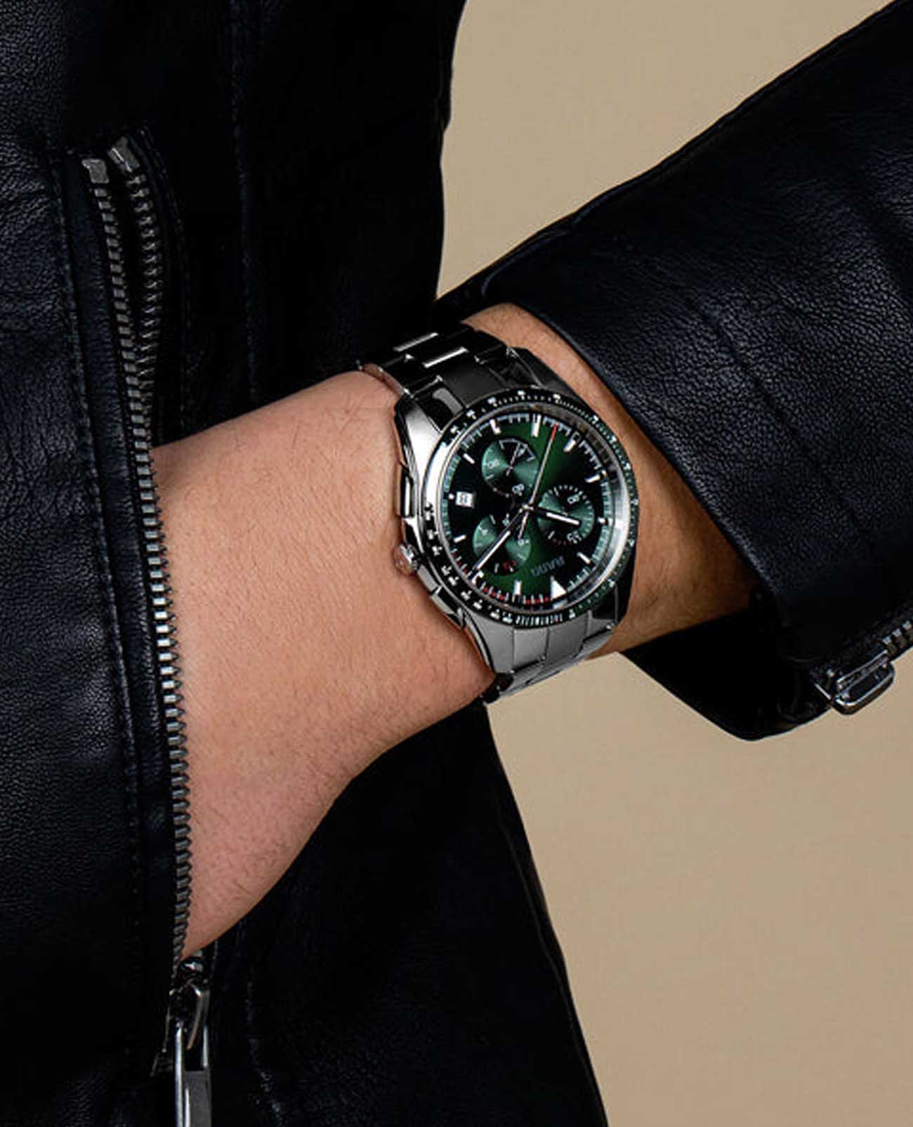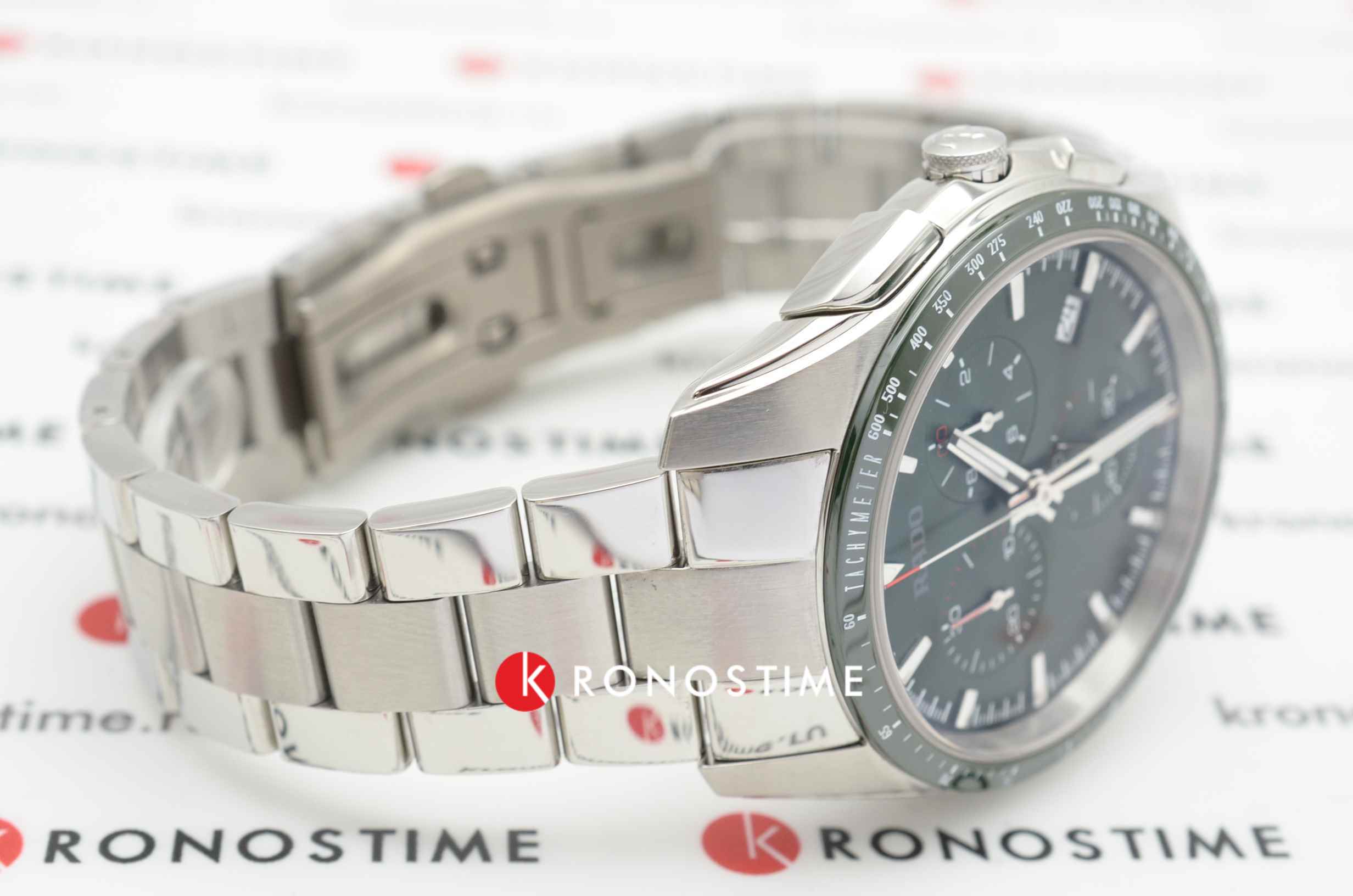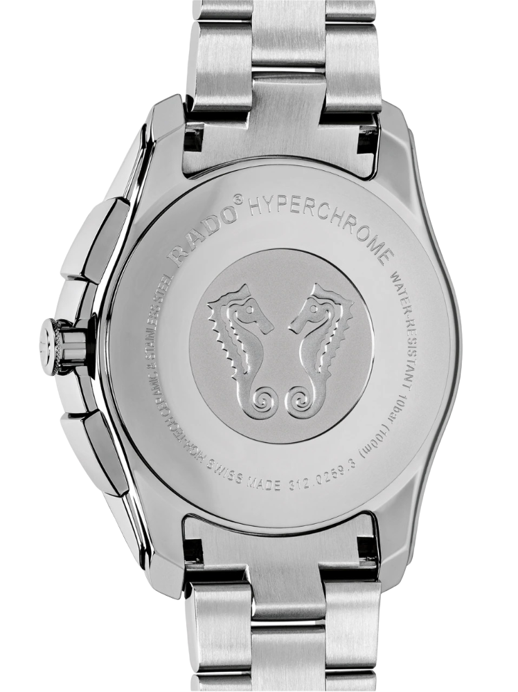 Швейцарские кварцевые часы- хронографХронографФункция позволяет измерять отрезки времени с особой точностью: часы, минуты, секунды. Верным признаком хронографа является наличие на циферблате 3 дополнительных окошек-счётчиков. Rado Hyperchrome Chronograph R32259313. Сапфировое стеклоСапфировое стеклоПрочный и надёжный материал из кристалла сапфира синтетического происхождения, характеризующийся особой твёрдостью и устойчивостью к царапинам и повреждениям. устойчивое к мелким механическим повреждениям. Корпус изготовлен из нержавеющей стали. БезельБезельВнешний ободок, закрепляющий стекло. В спортивных часах так называется поворотное кольцо с делениями на циферблате, выполняет роль таймера – замеряет отрезки времени на шкале. Неподвижный безель – элемент декора. Однонаправленно вращающийся безель на дайверских часах позволяет фиксировать моменты погружения и выныривания на поверхность. из высокотехнологичной керамикиВысокотехнологичная керамикаИнновационный запатентованный Rado материал с гладкой или матовой поверхностью. Керамика за счёт кристаллической структуры обладает повышенной устойчивостью от возникновения царапин. Материал способен принимать температуру тела человека, обеспечивая невероятный комфорт при ношении.. Класс водозащиты: 100 метров, позволит плавать, нырять и заниматься другими водными видами спорта. Браслет из стали на раскладной застёжкеРаскладная застёжкаТакой тип застёжки используется только на браслетах из металла. Она никогда не раскрывается полностью, происходит разделение на 2 и более частей. Раскладывающая застёжка снизит вероятность потери часов к минимуму..