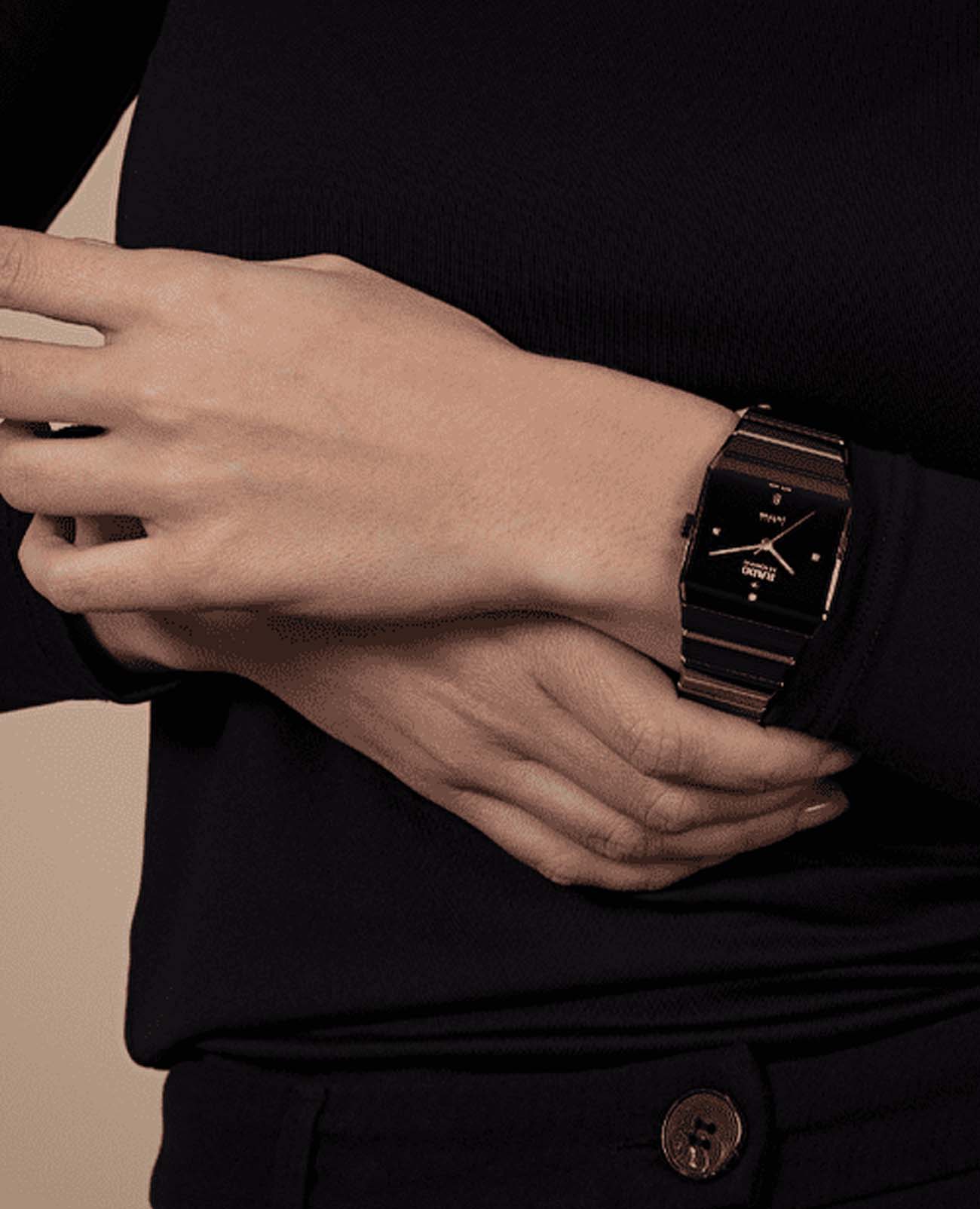 Мужские швейцарские механические часы Rado Anatom Automatic R10201712. Сапфировое стеклоСапфировое стеклоПрочный и надёжный материал из кристалла сапфира синтетического происхождения, характеризующийся особой твёрдостью и устойчивостью к царапинам и повреждениям. устойчивое к мелким механическим повреждениям. Корпус часов изготовлен из нержавеющей стали и керамики. Стрелки с люминесцентным покрытиемЛюминесцентное покрытиеПозволяет считывать показания времени в темноте. Производители наносят на стрелки, часовые индексы, безель или поверхность циферблата светонакопительный состав, дающий холодное свечение.. Венчает циферблат на отметке 12 часов культовый подвижный якорь, дополненный сдержанным окошком даты, расположенным на отметке 6 часов. Класс водозащиты: 50 метров, позволит защитить корпус от случайных брызг или капель дождя. Стальной браслет и керамика на застёжке-бабочке с кнопкамиЗастёжка "бабочка"Такой вид застёжки дополняется предохранителями, помогающими избежать случайного раскрытия браслета. Обладают изящным исполнением. . 3 бриллианта Top Wesselton полной огранки и стрелки цвета родия с белым покрытием Super-LumiNova® создают сияющий контраст на фоне глубины циферблата.