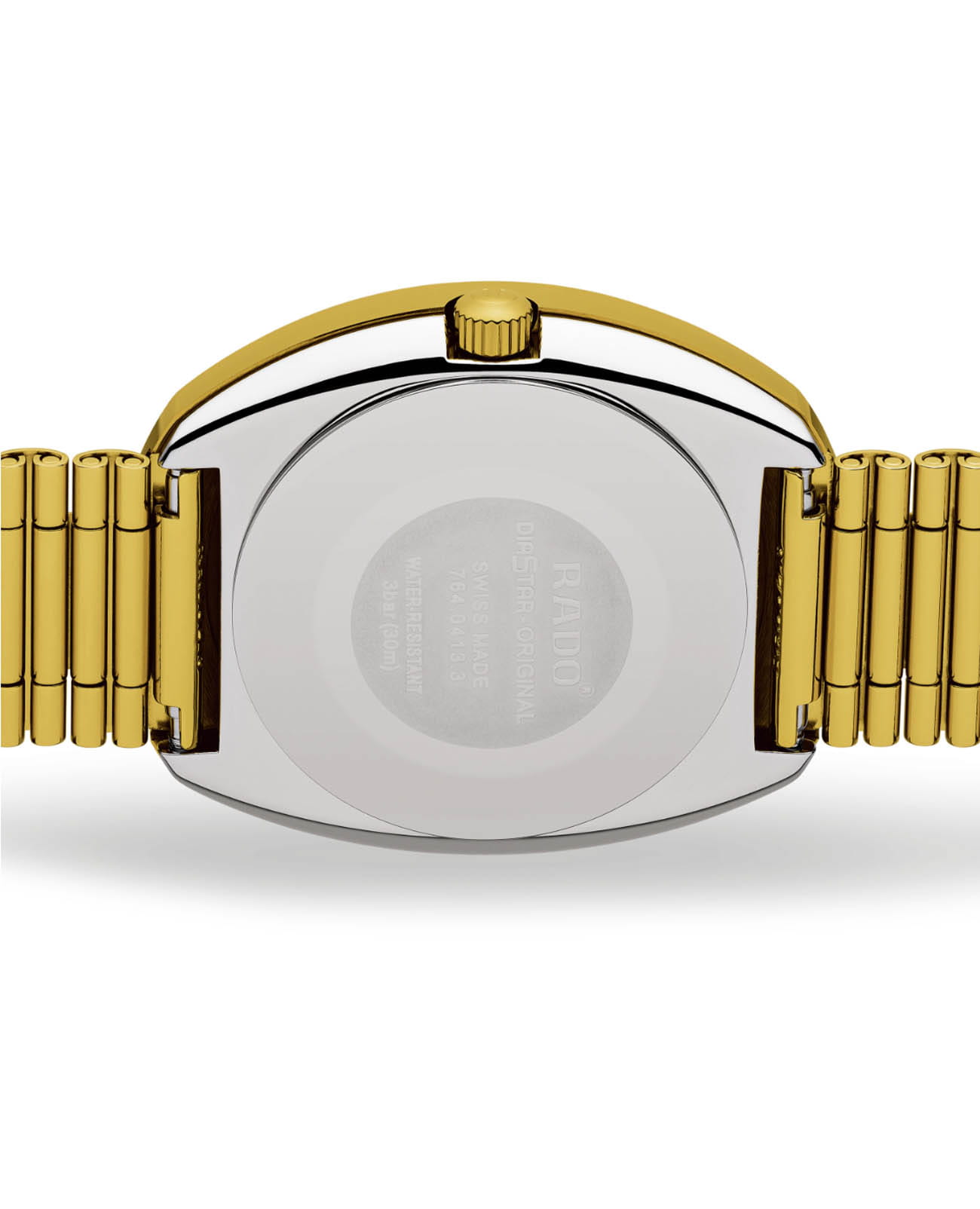 Мужские часы Rado The Original Automatic R12413503 с надёжным автоматическим механизмом. Корпус и браслет часов выполнены из нержавеющей стали c PVD-покрытиемPVDУльтратонкое покрытие наносится в технике вакуумного напыления, сочетает в себе нитрид титана особой прочности со слоем золота или оксида хрома. Несёт в себе декоративную или защитную функцию.. Стальной браслет на раскладной застёжкеРаскладная застёжкаТакой тип застёжки используется только на браслетах из металла. Она никогда не раскрывается полностью, происходит разделение на 2 и более частей. Раскладывающая застёжка снизит вероятность потери часов к минимуму.. Класс водозащиты: 30 метров, позволит защитить корпус от случайных брызг или капель дождя. Циферблат с узорами инкрустирован сапфирами. Окошко даты и дня недели находится в положении 6 часов. Стрелки и метки с люминесцентным покрытиемЛюминесцентное покрытиеПозволяет считывать показания времени в темноте. Производители наносят на стрелки, часовые индексы, безель или поверхность циферблата светонакопительный состав, дающий холодное свечение..