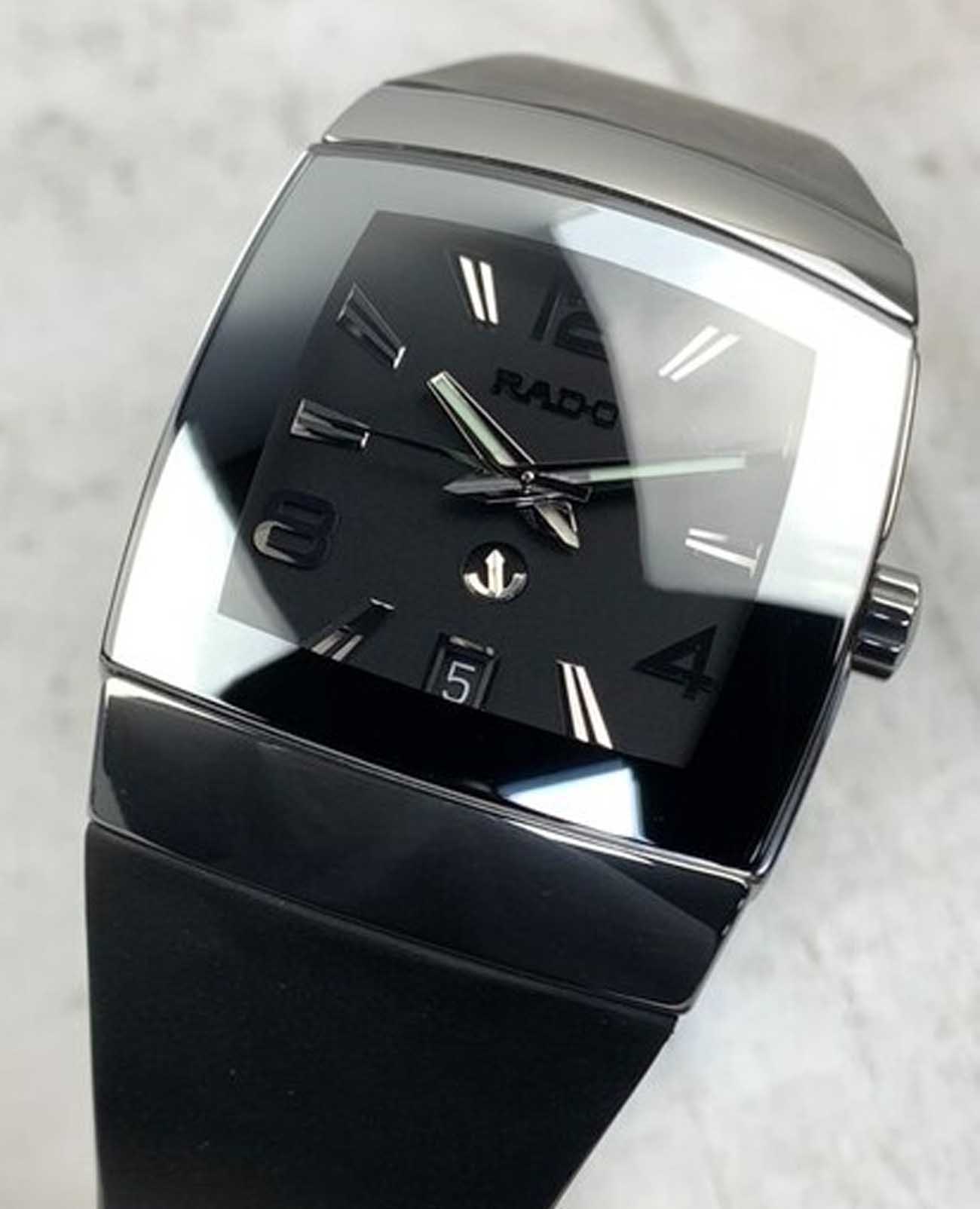 Швейцарские мужские механические швейцарские часы с автоподзаводом Rado Sintra R13598159. Сапфировое стеклоСапфировое стеклоПрочный и надёжный материал из кристалла сапфира синтетического происхождения, характеризующийся особой твёрдостью и устойчивостью к царапинам и повреждениям. устойчивое к появлению царапин, обладающее высокой прозрачностью. Корпус часов изготовлен из высокотехнологичной керамикиВысокотехнологичная керамикаИнновационный запатентованный Rado материал с гладкой или матовой поверхностью. Керамика за счёт кристаллической структуры обладает повышенной устойчивостью от возникновения царапин. Материал способен принимать температуру тела человека, обеспечивая невероятный комфорт при ношении.. Окошко даты находится в положении 6 часов. Стрелки с люминесцентным покрытиемЛюминесцентное покрытиеПозволяет считывать показания времени в темноте. Производители наносят на стрелки, часовые индексы, безель или поверхность циферблата светонакопительный состав, дающий холодное свечение.. Класс водозащиты: 30 метров, позволит защитить корпус от случайных брызг или капель дождя. Каучуковый ремешок на раскладной застёжкеРаскладная застёжкаТакой тип застёжки используется только на браслетах из металла. Она никогда не раскрывается полностью, происходит разделение на 2 и более частей. Раскладывающая застёжка снизит вероятность потери часов к минимуму..