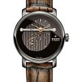 Классический ремешок из натуральной кожи выгодно гармонирует с оригинальным циферблатом, сквозь прозрачное окошко которого можно рассмотреть движение деталей автоматического механизма. Необычно смотрится миниатюрная индикация времени и отдельный секундный счётчик. Высокую точность хода обеспечивает калибр ETA 2899-S2 с запасом хода 42 часа, имеющим узор «женевские волны». Прозрачная задняя крышка. Стекло из сапфира с антибликовым покрытием. Корпус и безельБезельВнешний ободок, закрепляющий стекло. В спортивных часах так называется поворотное кольцо с делениями на циферблате, выполняет роль таймера – замеряет отрезки времени на шкале. Неподвижный безель – элемент декора. Однонаправленно вращающийся безель на дайверских часах позволяет фиксировать моменты погружения и выныривания на поверхность. из высокотехнологичной плазменной керамикиВысокотехнологичная плазменная керамикаИнновационный материал, технология запатентована. Выплавление керамики осуществляется в печи при 20 000 °C, белоснежный материал под воздействием ультравысокой температуры приобретает уникальный блеск, присущий металлам.. Водостойкость до 5 бар. Апертура даты. Диаметр корпуса: 43 мм.