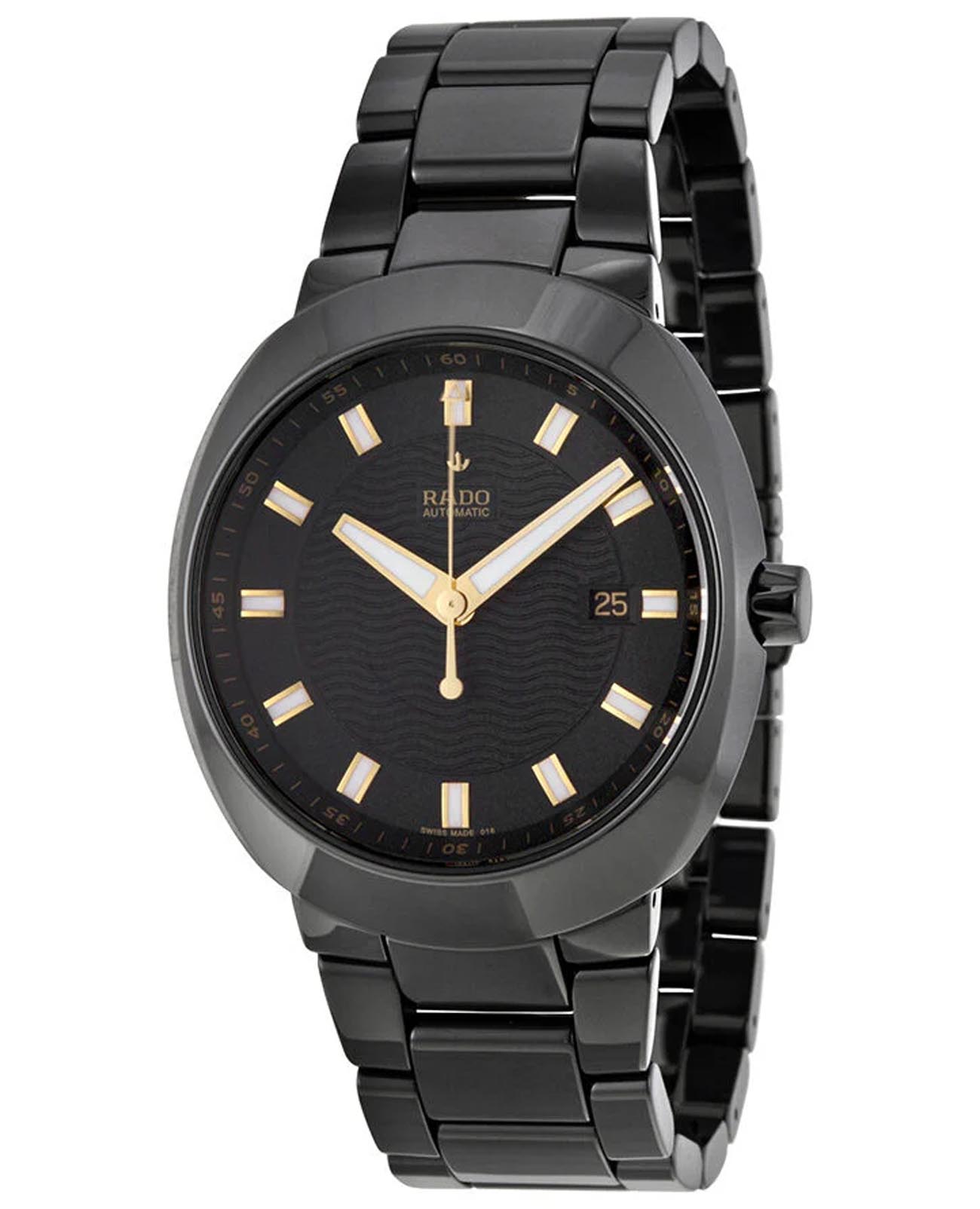 Мужские механические швейцарские часы с автоподзаводом Rado D-Star R15609162. Сапфировое стеклоСапфировое стеклоПрочный и надёжный материал из кристалла сапфира синтетического происхождения, характеризующийся особой твёрдостью и устойчивостью к царапинам и повреждениям. устойчивое к мелким механическим повреждениям. Корпус часов изготовлен из высокотехнологичной керамикиВысокотехнологичная керамикаИнновационный запатентованный Rado материал с гладкой или матовой поверхностью. Керамика за счёт кристаллической структуры обладает повышенной устойчивостью от возникновения царапин. Материал способен принимать температуру тела человека, обеспечивая невероятный комфорт при ношении.. Окошко даты находится в положении 3 часа. Стрелки с люминесцентным покрытиемЛюминесцентное покрытиеПозволяет считывать показания времени в темноте. Производители наносят на стрелки, часовые индексы, безель или поверхность циферблата светонакопительный состав, дающий холодное свечение.. Класс водозащиты: 100 метров, позволит плавать, нырять и заниматься другими водными видами спорта. Браслет из высокотехнологичной керамикиВысокотехнологичная керамикаИнновационный запатентованный Rado материал с гладкой или матовой поверхностью. Керамика за счёт кристаллической структуры обладает повышенной устойчивостью от возникновения царапин. Материал способен принимать температуру тела человека, обеспечивая невероятный комфорт при ношении. на раскладной застёжкеРаскладная застёжкаТакой тип застёжки используется только на браслетах из металла. Она никогда не раскрывается полностью, происходит разделение на 2 и более частей. Раскладывающая застёжка снизит вероятность потери часов к минимуму..