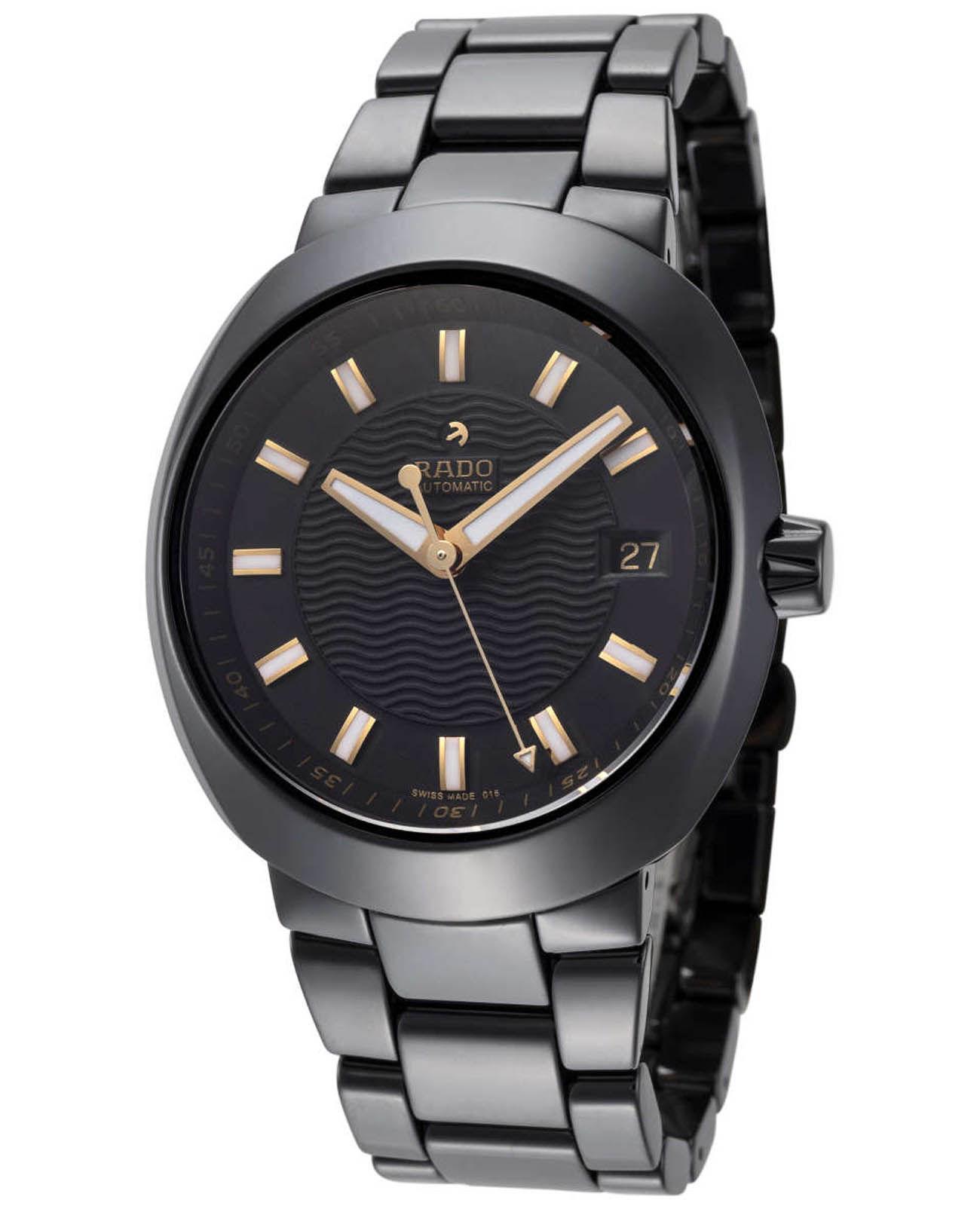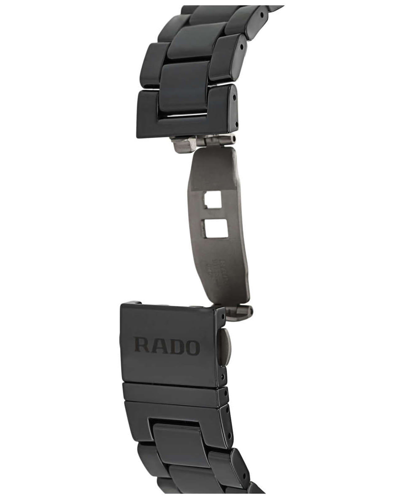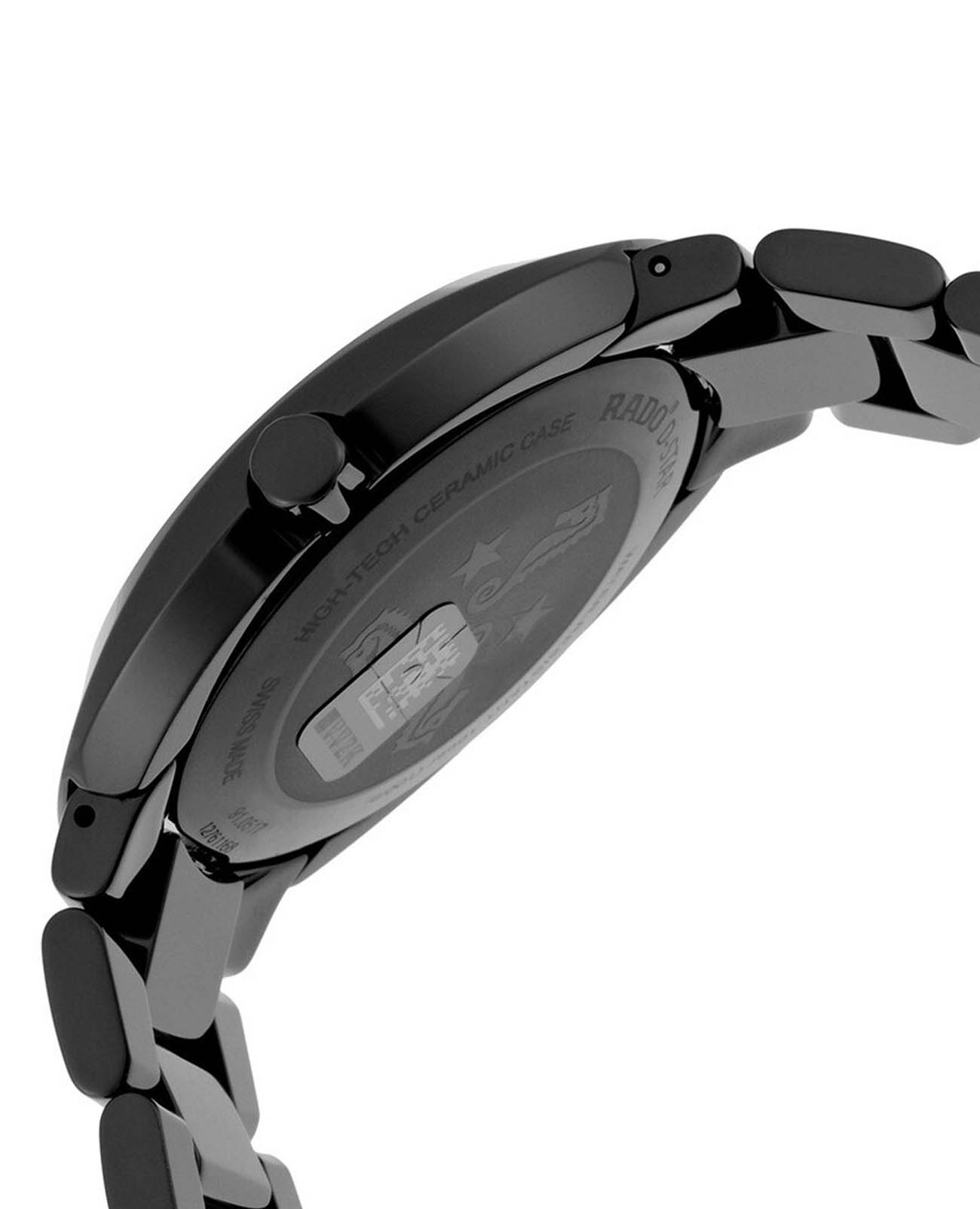 Мужские механические швейцарские часы с автоподзаводом Rado D-Star R15610162. Сапфировое стеклоСапфировое стеклоПрочный и надёжный материал из кристалла сапфира синтетического происхождения, характеризующийся особой твёрдостью и устойчивостью к царапинам и повреждениям. устойчивое к мелким механическим повреждениям. Корпус часов изготовлен из высокотехнологичной керамикиВысокотехнологичная керамикаИнновационный запатентованный Rado материал с гладкой или матовой поверхностью. Керамика за счёт кристаллической структуры обладает повышенной устойчивостью от возникновения царапин. Материал способен принимать температуру тела человека, обеспечивая невероятный комфорт при ношении.. Окошко даты находится в положении 3 часа. Стрелки с люминесцентным покрытиемЛюминесцентное покрытиеПозволяет считывать показания времени в темноте. Производители наносят на стрелки, часовые индексы, безель или поверхность циферблата светонакопительный состав, дающий холодное свечение.. Класс водозащиты: 100 метров, позволит плавать, нырять и заниматься другими водными видами спорта. Браслет из высокотехнологичной керамикиВысокотехнологичная керамикаИнновационный запатентованный Rado материал с гладкой или матовой поверхностью. Керамика за счёт кристаллической структуры обладает повышенной устойчивостью от возникновения царапин. Материал способен принимать температуру тела человека, обеспечивая невероятный комфорт при ношении. на раскладной застёжкеРаскладная застёжкаТакой тип застёжки используется только на браслетах из металла. Она никогда не раскрывается полностью, происходит разделение на 2 и более частей. Раскладывающая застёжка снизит вероятность потери часов к минимуму..