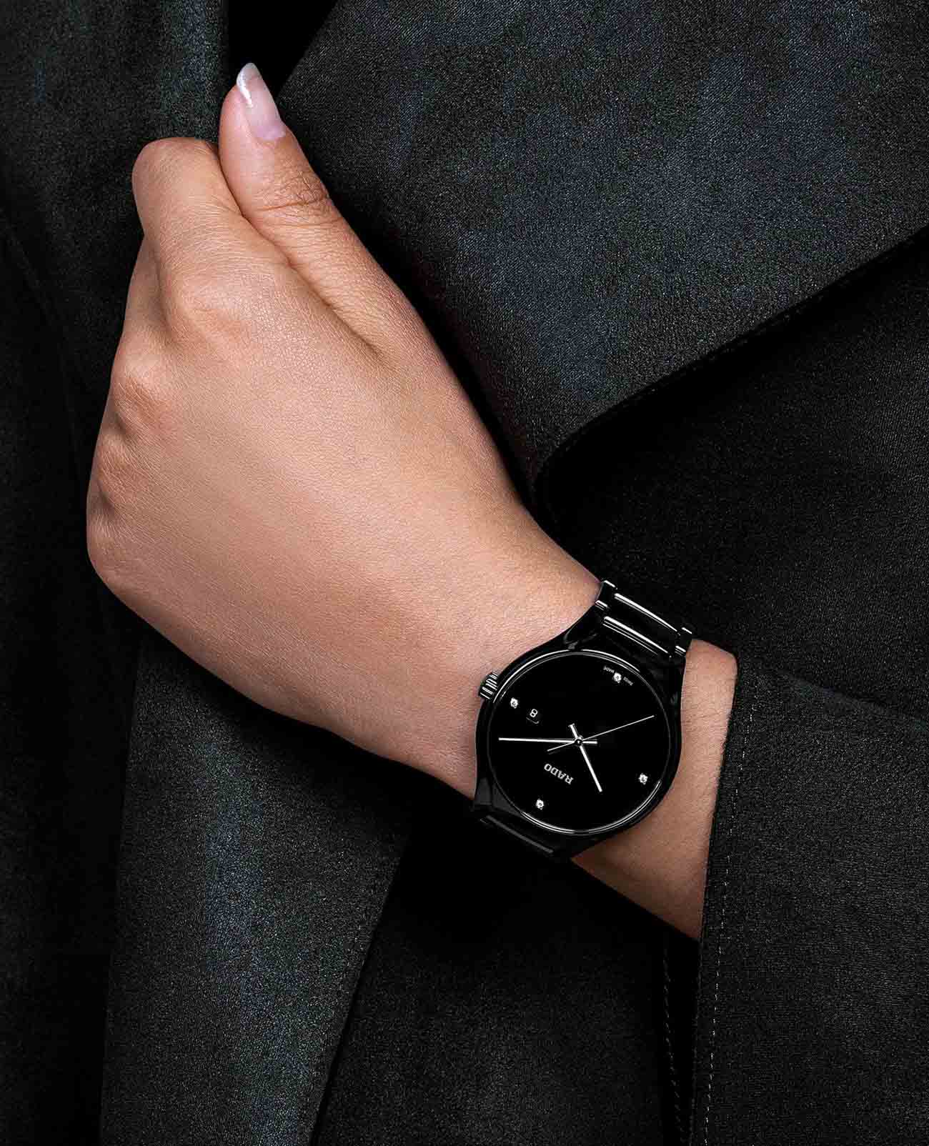 Корпус часов изготовлен из лёгкого и прочного титана, а также высокотехнологичной керамикиВысокотехнологичная керамикаИнновационный запатентованный Rado материал с гладкой или матовой поверхностью. Керамика за счёт кристаллической структуры обладает повышенной устойчивостью от возникновения царапин. Материал способен принимать температуру тела человека, обеспечивая невероятный комфорт при ношении., что обеспечивает их исключительную прочность и износоустойчивость. Такое сочетание материалов придаёт часам не только изысканную красоту, но и невероятную лёгкость, что делает их комфортными в носке.