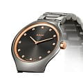 Стильный аксессуар будет настоящим украшением вашего запястья, строгая расцветка с металлическим отливом позволяет носить часы в сочетании с любой одеждой. Вместо часовых индексов использовано 12 бриллиантов в 0,067 карат, роскошное исполнение идеально подойдет для привлечения внимания к имиджу элегантной бизнес-леди. Корпус выполнен из сочетания нержавеющей стали 316L и плазменной керамикиВысокотехнологичная плазменная керамикаИнновационный материал, технология запатентована. Выплавление керамики осуществляется в печи при 20 000 °C, белоснежный материал под воздействием ультравысокой температуры приобретает уникальный блеск, присущий металлам., что позволяет получить дополнительную устойчивость к царапинам. Кварцевый механизм ETA 282.001. Сапфировое стекло. Износоустойчивое PVD-покрытиеPVDУльтратонкое покрытие наносится в технике вакуумного напыления, сочетает в себе нитрид титана особой прочности со слоем золота или оксида хрома. Несёт в себе декоративную или защитную функцию.. Водонепроницаемость 30 метров.. Отображение даты. Диаметр корпуса: 30 мм.