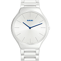 Модель создана в сотрудничестве с Grandi Giardini Italiani - ассоциацией садов Италии Rado True Thinline R27957022, кварцевый механизм с высокой точностью. Сапфировое стекло устойчивое к появлению царапин, обладающее высокой прозрачностью. Класс водозащиты: 30 метров, позволит защитить корпус от случайных брызг или капель дождя. Корпус часов изготовлен из керамики, белого цвета.