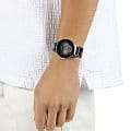 Корпус часов изготовлен из высококачественной нержавеющей стали. Браслет из стали и =templateTooltip "high_tech_ceramic" "высокотехнологичной керамики"} закреплён на удобной и надёжной раскладной застёжкеРаскладная застёжкаТакой тип застёжки используется только на браслетах из металла. Она никогда не раскрывается полностью, происходит разделение на 2 и более частей. Раскладывающая застёжка снизит вероятность потери часов к минимуму.