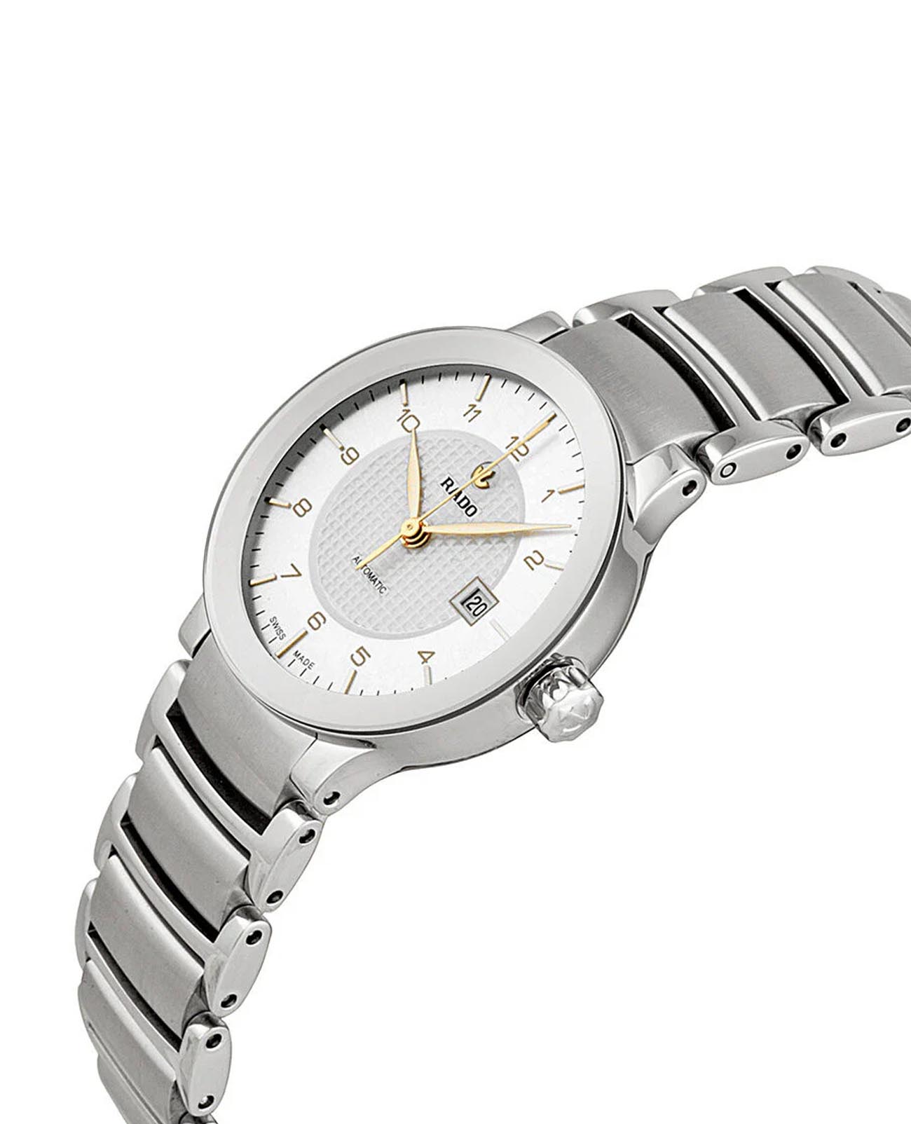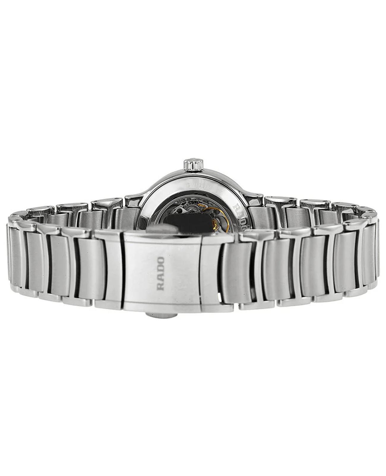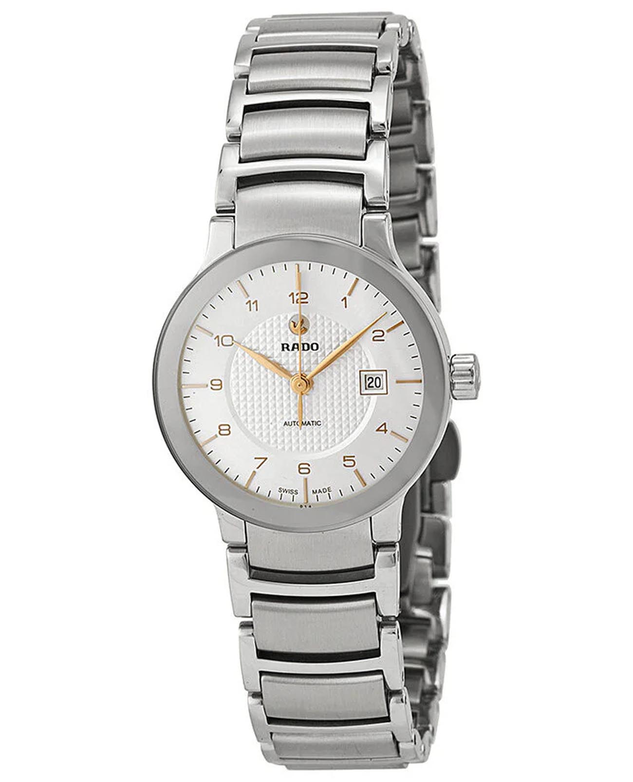 Швейцарские женские механические часы с автоподзаводом Rado Centrix R30940143. Сапфировое стеклоСапфировое стеклоПрочный и надёжный материал из кристалла сапфира синтетического происхождения, характеризующийся особой твёрдостью и устойчивостью к царапинам и повреждениям. устойчивое к появлению царапин, обладающее высокой прозрачностью. Корпус часов изготовлен из нержавеющей стали. Окошко даты находится в положении 3 часа. Класс водозащиты: 30 метров, позволит защитить корпус от случайных брызг или капель дождя. Браслет из нержавеющей стали на раскладной застёжкеРаскладная застёжкаТакой тип застёжки используется только на браслетах из металла. Она никогда не раскрывается полностью, происходит разделение на 2 и более частей. Раскладывающая застёжка снизит вероятность потери часов к минимуму..