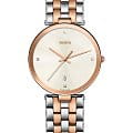 Премиальный аксессуар точно пройдёт испытание временем, сохраняя актуальность в любой ситуации. Минималистичный светлый циферблат инкрустирован 4 роскошными бриллиантами в 0,011 карат. Корпус и браслет изготовлены из нержавеющей стали 316L, дополнительно защищённой PVD-покрытиемPVDУльтратонкое покрытие наносится в технике вакуумного напыления, сочетает в себе нитрид титана особой прочности со слоем золота или оксида хрома. Несёт в себе декоративную или защитную функцию. цвета розового золота. Швейцарский кварцевый механизм ETA 955.112. Сапфировое стекло отличается устойчивостью к царапинам. Водостойкость 30 метров. . Отображение даты. Диаметр корпуса: 38 мм.