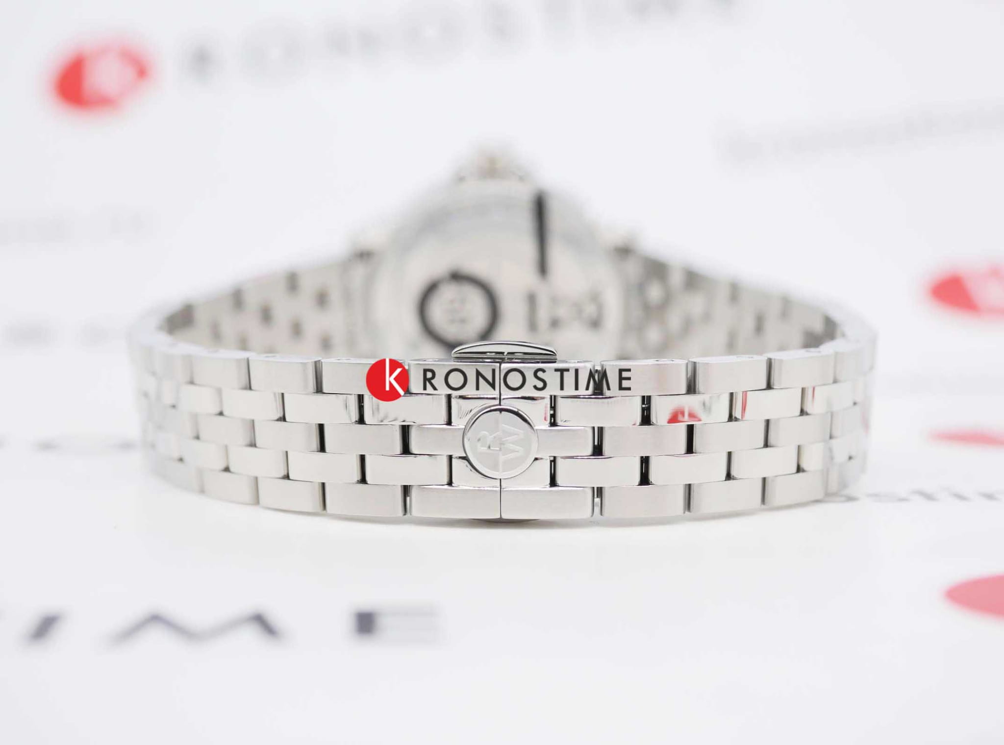 Браслет из нержавеющей стали оснащён раскладной застёжкойРаскладная застёжкаТакой тип застёжки используется только на браслетах из металла. Она никогда не раскрывается полностью, происходит разделение на 2 и более частей. Раскладывающая застёжка снизит вероятность потери часов к минимуму. с двойной системой безопасности, обеспечивая комфорт и надёжность при носке.