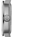 Градиентный циферблат защищен прочным сапфировым стекломСапфировое стеклоПрочный и надёжный материал из кристалла сапфира синтетического происхождения, характеризующийся особой твёрдостью и устойчивостью к царапинам и повреждениям.. Накладные метки в виде штрихов и прямоугольные стрелки в стиле Baton добавляют строгий характер. Стрелки и метки имеют люминесцентное покрытиеЛюминесцентное покрытиеПозволяет считывать показания времени в темноте. Производители наносят на стрелки, часовые индексы, безель или поверхность циферблата светонакопительный состав, дающий холодное свечение., которое светится в темноте после небольшой зарядки на свету. Прозрачное окошко в положении 6 часов позволяет наблюдать за работой механизма часов.