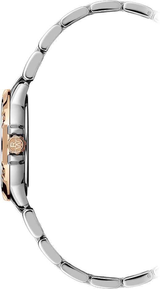 Raymond Weil Tango Classic (артикул 5960-SP5-70061) — это элегантные женские часы, идеально сочетающие стиль и функциональность. Корпус диаметром 30 мм изготовлен из нержавеющей стали и БезельБезельВнешний ободок, закрепляющий стекло. В спортивных часах так называется поворотное кольцо с делениями на циферблате, выполняет роль таймера – замеряет отрезки времени на шкале. Неподвижный безель – элемент декора. Однонаправленно вращающийся безель на дайверских часах позволяет фиксировать моменты погружения и выныривания на поверхность. с PVD-покрытиемPVDУльтратонкое покрытие наносится в технике вакуумного напыления, сочетает в себе нитрид титана особой прочности со слоем золота или оксида хрома. Несёт в себе декоративную или защитную функцию. розового золота, создающим утончённый двухцветный дизайн. Циферблат терракотового цвета защищён сапфировым стекломСапфировое стеклоПрочный и надёжный материал из кристалла сапфира синтетического происхождения, характеризующийся особой твёрдостью и устойчивостью к царапинам и повреждениям. с антибликовым покрытиемАнтибликовое покрытиеСлой оксида металла в 0,13-0,3 микрон, благодаря которому стекло часов не бликует и не отражает свет. Антибликовое покрытие уменьшает отражение света в 10 раз, обеспечивая отличную читаемость показателей циферблата. и оснащён люминесцентными стрелками с люминесцентным покрытиемЛюминесцентное покрытиеПозволяет считывать показания времени в темноте. Производители наносят на стрелки, часовые индексы, безель или поверхность циферблата светонакопительный состав, дающий холодное свечение., что обеспечивает отличную видимость в любое время суток. Окошко даты расположено на отметке «3 часа» для удобства использования. Браслет из нержавеющей стали с PVD-покрытиемPVDУльтратонкое покрытие наносится в технике вакуумного напыления, сочетает в себе нитрид титана особой прочности со слоем золота или оксида хрома. Несёт в себе декоративную или защитную функцию. оснащён надёжной раскладной застёжкойРаскладная застёжкаТакой тип застёжки используется только на браслетах из металла. Она никогда не раскрывается полностью, происходит разделение на 2 и более частей. Раскладывающая застёжка снизит вероятность потери часов к минимуму. для удобства и безопасности. Часы водонепроницаемы до 100 метров, что делает их подходящими для повседневной носки. Raymond Weil Tango Classic 5960-SP5-70061 — это универсальное решение для тех, кто ценит качество, стиль и практичность.