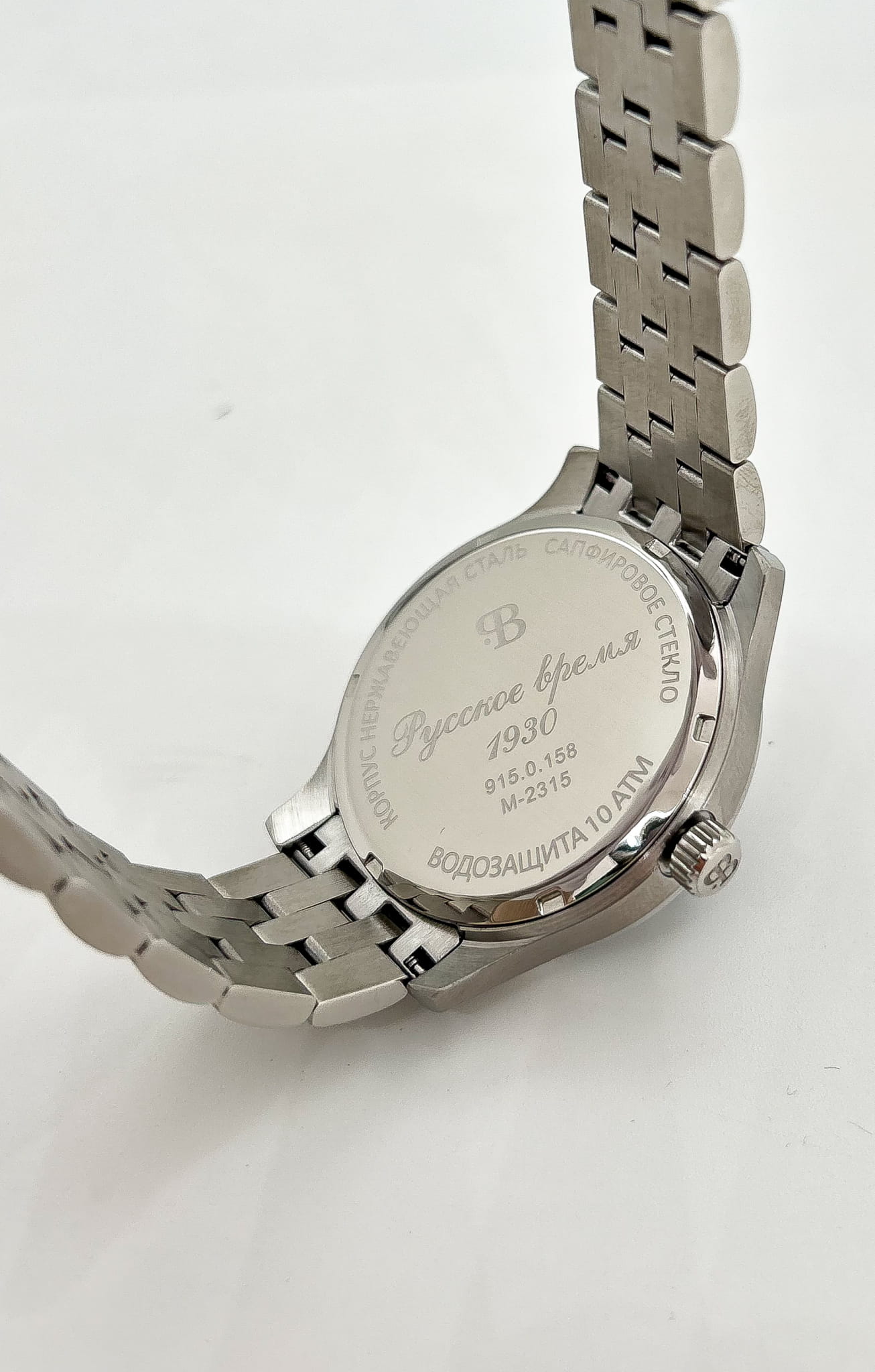 Российские часы Русское время 9150158бр оснащены кварцевый механизм, что обеспечивает исключительную надежность и точность хода. Корпус часов выполнен из стали, что придает ему долговечность и устойчивость к внешним воздействиям.Сапфировое стеклоСапфировое стеклоПрочный и надёжный материал из кристалла сапфира синтетического происхождения, характеризующийся особой твёрдостью и устойчивостью к царапинам и повреждениям. устойчиво к мелким механическим повреждениям, что гарантирует долговечность и сохранение первоначального вида.