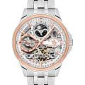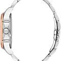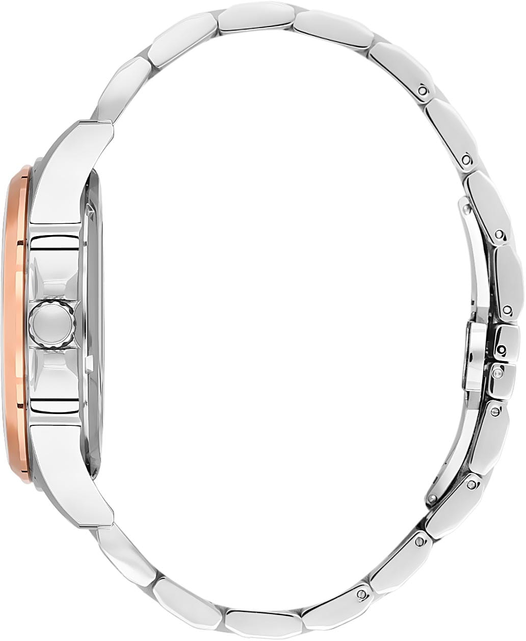 Мужские механические часы с автоподзаводом Santa Barbara Polo & Racquet Club — это стильный и технологичный аксессуар. Корпус диаметром 45 мм выполнен из стали. БезельБезельВнешний ободок, закрепляющий стекло. В спортивных часах так называется поворотное кольцо с делениями на циферблате, выполняет роль таймера – замеряет отрезки времени на шкале. Неподвижный безель – элемент декора. Однонаправленно вращающийся безель на дайверских часах позволяет фиксировать моменты погружения и выныривания на поверхность. с IP-покрытиемIP-покрытиеМетод ионного напыления. Демонстрирует повышенную устойчивость к истиранию, окислению и химическим веществам. Под воздействием высокого давления и температуры около 1500°C молекулы металла надёжно соединяются с частицами корпуса часов. розового золота, с матовой и полированной отделкой. Циферблат серебристого цвета двухуровневый, частично прозрачный, украшен фирменным логотипом и накладными метками в виде штрихов. Часы оснащены индикацией второго часового пояса. Стрелки заострённые, прямоугольные, в стиле Baton, с люминесцентным покрытиемЛюминесцентное покрытиеПозволяет считывать показания времени в темноте. Производители наносят на стрелки, часовые индексы, безель или поверхность циферблата светонакопительный состав, дающий холодное свечение., обеспечивающим хорошую читаемость в темноте. Метки также имеют люминесцентное покрытие. Циферблат защищён минеральным стекломМинеральное стеклоМинеральное стекло представляет собой искусственно выращенный минерал кварца. Такое стекло отличается особой устойчивостью к повреждениям и царапинам. Уступает по некоторым качествам сапфировому стеклу.. Часы оснащены стальным браслетом с матовой и полированной отделкой и застёжкой «бабочка» с кнопкамиЗастёжка "бабочка"Такой вид застёжки дополняется предохранителями, помогающими избежать случайного раскрытия браслета. Обладают изящным исполнением. . Водонепроницаемость 50 м позволяет использовать часы в повседневных условиях. Идеальный выбор для тех, кто ценит современный дизайн, функциональность и качество.