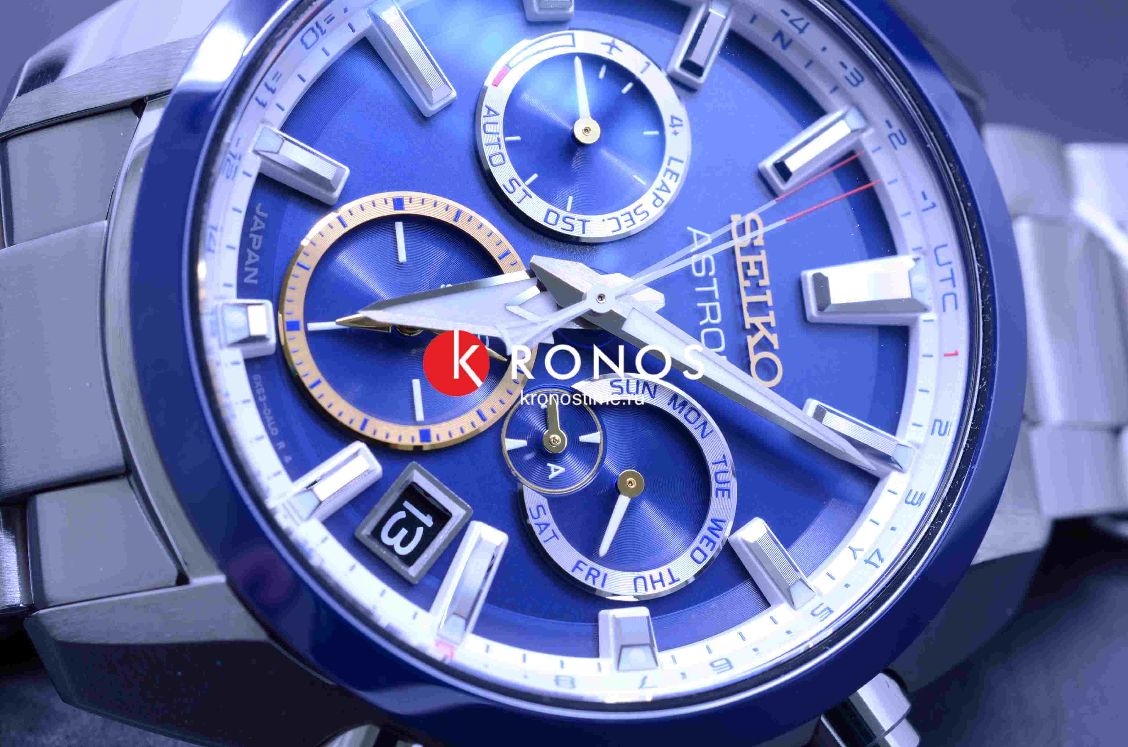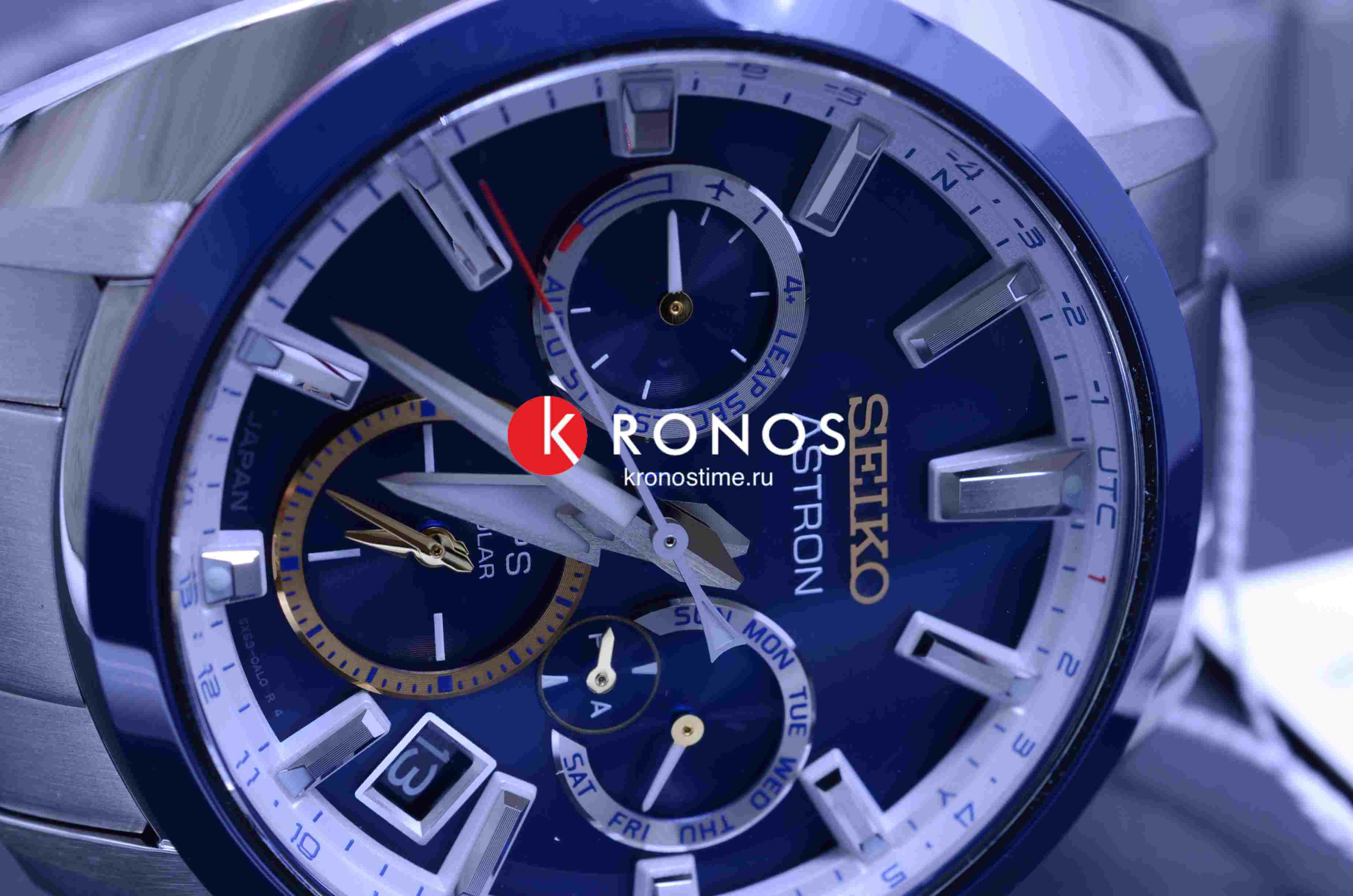 -приёмником, позволяющим определять и автоматически корректировать часовой пояс, дату, точное время. Модель получает энергию от солнечной панели, обеспечивая автономную работу часов. Японский кварцевый калибр Seiko 5X53 с точностью хода +/-15 секунд в месяц. Стекло из сапфира. Люминесцентная подсветкаЛюминесцентное покрытиеПозволяет считывать показания времени в темноте. Производители наносят на стрелки, часовые индексы, безель или поверхность циферблата светонакопительный состав, дающий холодное свечение. Lumibrite. Водостойкость 10 бар. Дополнительный силиконовый ремешок в комплекте. Задняя крышка с гравировкой. Функция энергосбережения. Вечный календарьВечный календарьКлассическое часовое усложнение, представляющее собой календарь, рассчитанный на несколько лет вперёд (стандартно – до 2099 года). Определяет текущую дату, день недели, месяц. рассчитан до 28 февраля 2100 года. Мировое времяМировое время Полезное часовое усложнение, отображающее время в основных городах и известных областях по всему миру, оно связано с часовыми поясами, удобно для путешественников и бизнесменов. . Диаметр корпуса: 42,7 мм.