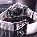 Механические часы с автоподзаводом. Калибр 7S23. 12 часовой формат времени. В механизме 21 камень. Индикатор числа и дня недели. Защищены от магнитных полей. Прозрачная задняя крышка. Браслет с раскладывающейся застежкой. Люминесцентные стрелки и метки. Корпус и браслет из нержавеющей стали. Диаметр 43,4 мм.