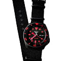 Водозащита 100 метров (10 бар) позволяет использовать часы для плавания и других водных видов спорта. Чёрный нейлоновый ремешок с раскладной застёжкойРаскладная застёжкаТакой тип застёжки используется только на браслетах из металла. Она никогда не раскрывается полностью, происходит разделение на 2 и более частей. Раскладывающая застёжка снизит вероятность потери часов к минимуму. обеспечивает комфортное ношение и надёжную фиксацию на запястье. ​​