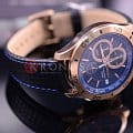 Успешные люди, желающие идти в ногу со временем, выбирают инновационные и надежные часы марки Seiko. Кварцевый механизм, калибр Seiko  8T67. Корпус круглой формы выполнен из высокопрочной стали с антикоррозийными свойствами с PVD покрытием. Синий фон циферблата с позолоченными элементами дизайна. Часы снабжены минеральным стеклом, устойчивым к царапинам. Водонепроницаемость до 100 метров. Часы прочно удерживаются на руке ремешком из натуральной кожи синего цвета. Часы оснащены хронографом и тахиметром.