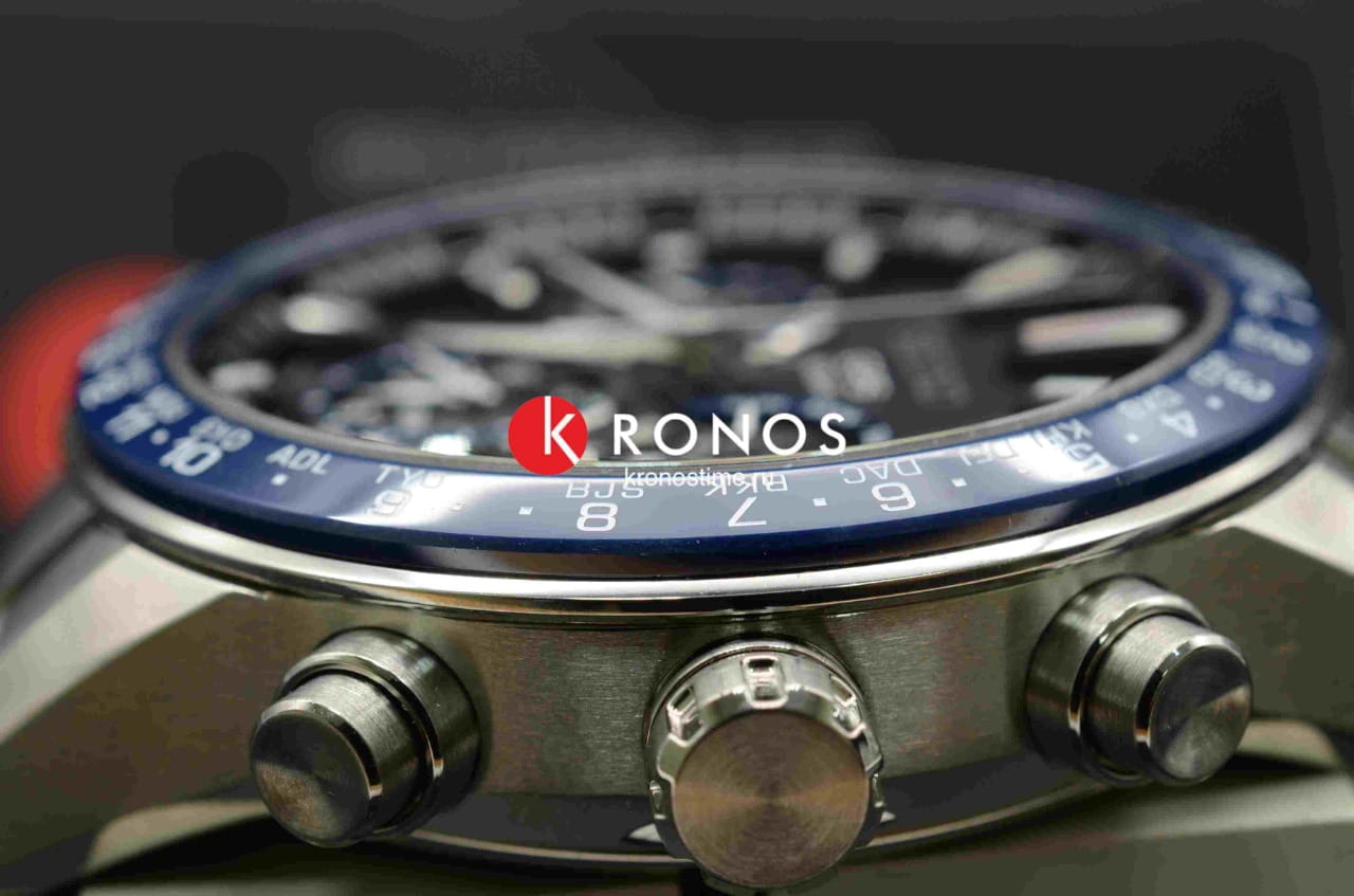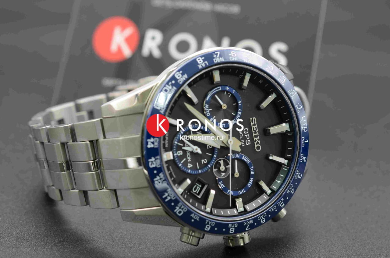 Боковые части оставлены матовыми, корпус же отполирован вручную путём инновационной технологии Seiko Zaratsu, позволяющей добиться гладкой зеркальной поверхности. Расставлены синие цветовые  акценты, безельБезельВнешний ободок, закрепляющий стекло. В спортивных часах так называется поворотное кольцо с делениями на циферблате, выполняет роль таймера – замеряет отрезки времени на шкале. Неподвижный безель – элемент декора. Однонаправленно вращающийся безель на дайверских часах позволяет фиксировать моменты погружения и выныривания на поверхность. имеет PVD-покрытиеPVDУльтратонкое покрытие наносится в технике вакуумного напыления, сочетает в себе нитрид титана особой прочности со слоем золота или оксида хрома. Несёт в себе декоративную или защитную функцию. им в тон. Внутри титанового корпуса находится кварцевый механизм собственного производства Seiko 5X53, его точность хода - +/-15 секунд в месяц. Это часы на солнечной батарее - реализуется возможность . Функции: мировое времяМировое время Полезное часовое усложнение, отображающее время в основных городах и известных областях по всему миру, оно связано с часовыми поясами, удобно для путешественников и бизнесменов. , GPSGPSСистема спутниковой навигации. Часы оснащены приёмником GPS-сигнала, который получает необходимую информацию по GSM, GPRS, со спутников. Принимая сигнал, наручные часы могут установить точные показатели времени и даты, часовой пояс, сообщить местоположение своего владельца.