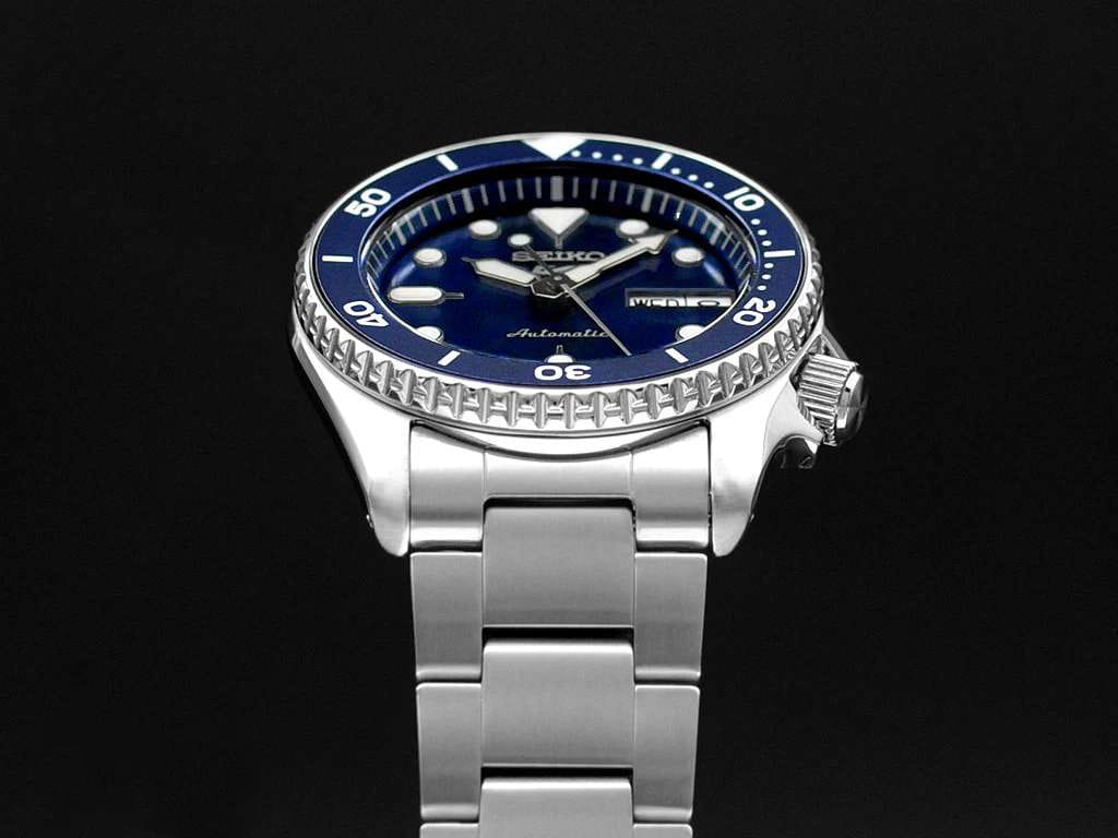 Мужские механические часы с автоподзаводом Seiko — это надёжный и функциональный аксессуар. Корпус размером 38 мм и толщиной 12 мм выполнен из нержавеющей стали. БезельБезельВнешний ободок, закрепляющий стекло. В спортивных часах так называется поворотное кольцо с делениями на циферблате, выполняет роль таймера – замеряет отрезки времени на шкале. Неподвижный безель – элемент декора. Однонаправленно вращающийся безель на дайверских часах позволяет фиксировать моменты погружения и выныривания на поверхность. с PVD-покрытиемPVDУльтратонкое покрытие наносится в технике вакуумного напыления, сочетает в себе нитрид титана особой прочности со слоем золота или оксида хрома. Несёт в себе декоративную или защитную функцию. однонаправленно вращающийся. Циферблат синего цвета оформлен индексами и стрелками. Окошки даты и дня недели расположены в положении 3 часов. Стрелки и метки с люминесцентным покрытиемЛюминесцентное покрытиеПозволяет считывать показания времени в темноте. Производители наносят на стрелки, часовые индексы, безель или поверхность циферблата светонакопительный состав, дающий холодное свечение. LumiBrite, обеспечивающим хорошую читаемость в темноте. Циферблат защищён прочным закалённым минеральным стеклом Hardlex. Механизм — автоматический калибр 4R36 (24 камня, частота 21 600 полуколебаний в час) с функцией остановки секундной стрелки и запасом хода до 41 часа. Заводная головка с защитой смещена в положение 4 часов. Прозрачная задняя крышка позволяет наблюдать за работой механизма. Часы оснащены стальным браслетом на тройной раскладной застёжкеРаскладная застёжкаТакой тип застёжки используется только на браслетах из металла. Она никогда не раскрывается полностью, происходит разделение на 2 и более частей. Раскладывающая застёжка снизит вероятность потери часов к минимуму. с фиксатором. Водонепроницаемость 100 м позволяет использовать часы для плавания и повседневного ношения. Идеальный выбор для тех, кто ценит японское качество и точность.